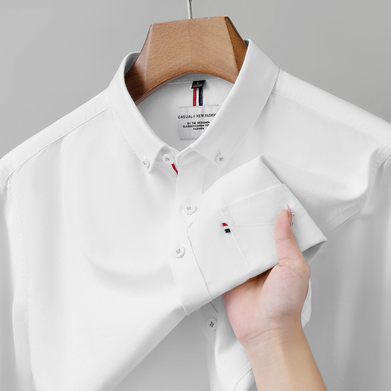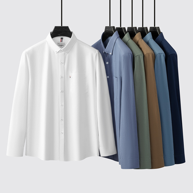 100% pure cotton high-end Oxford spun long sleeved shirt men's net version business casual brushed shirt workwear inch shirt trendy