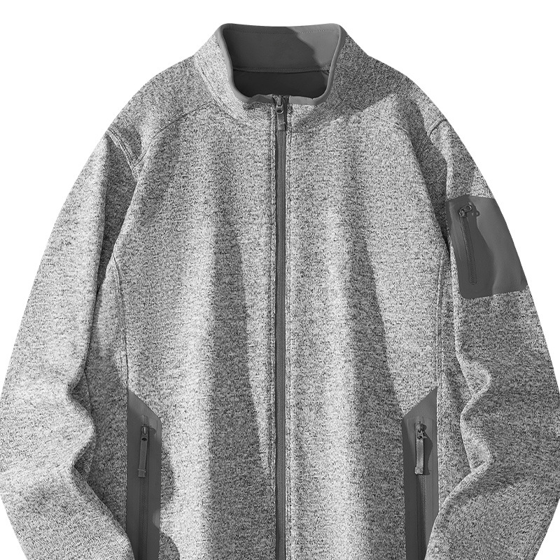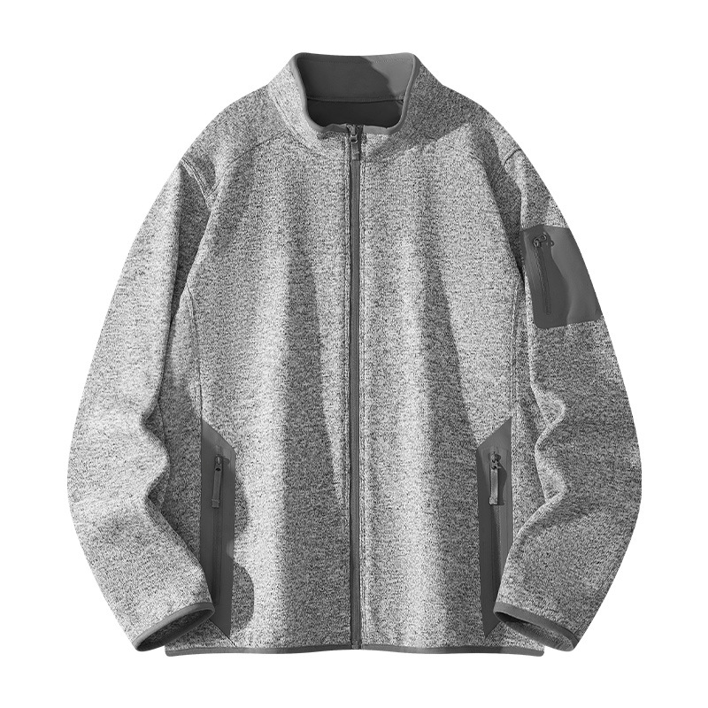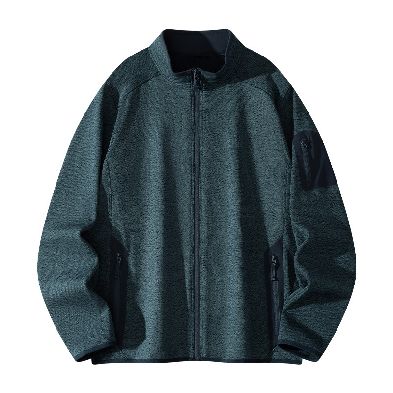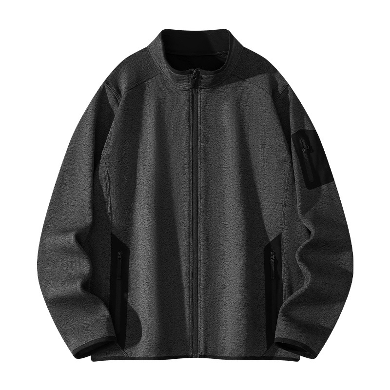 Big brand flat multi pocket stand up collar baseball jacket with open zipper, outdoor functional waterproof and warm long sleeved jacket for men