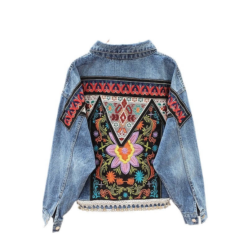Thailand Chaopai 2023 Autumn New Heavy Industry Embroidery Patch Bohemia Vintage Loose Denim Women's Coat