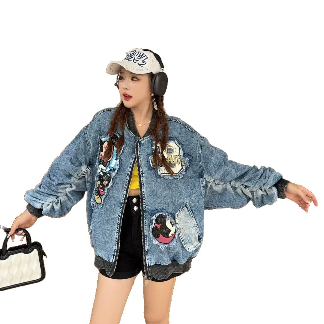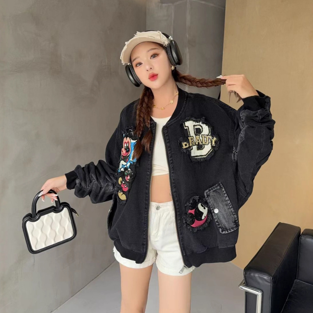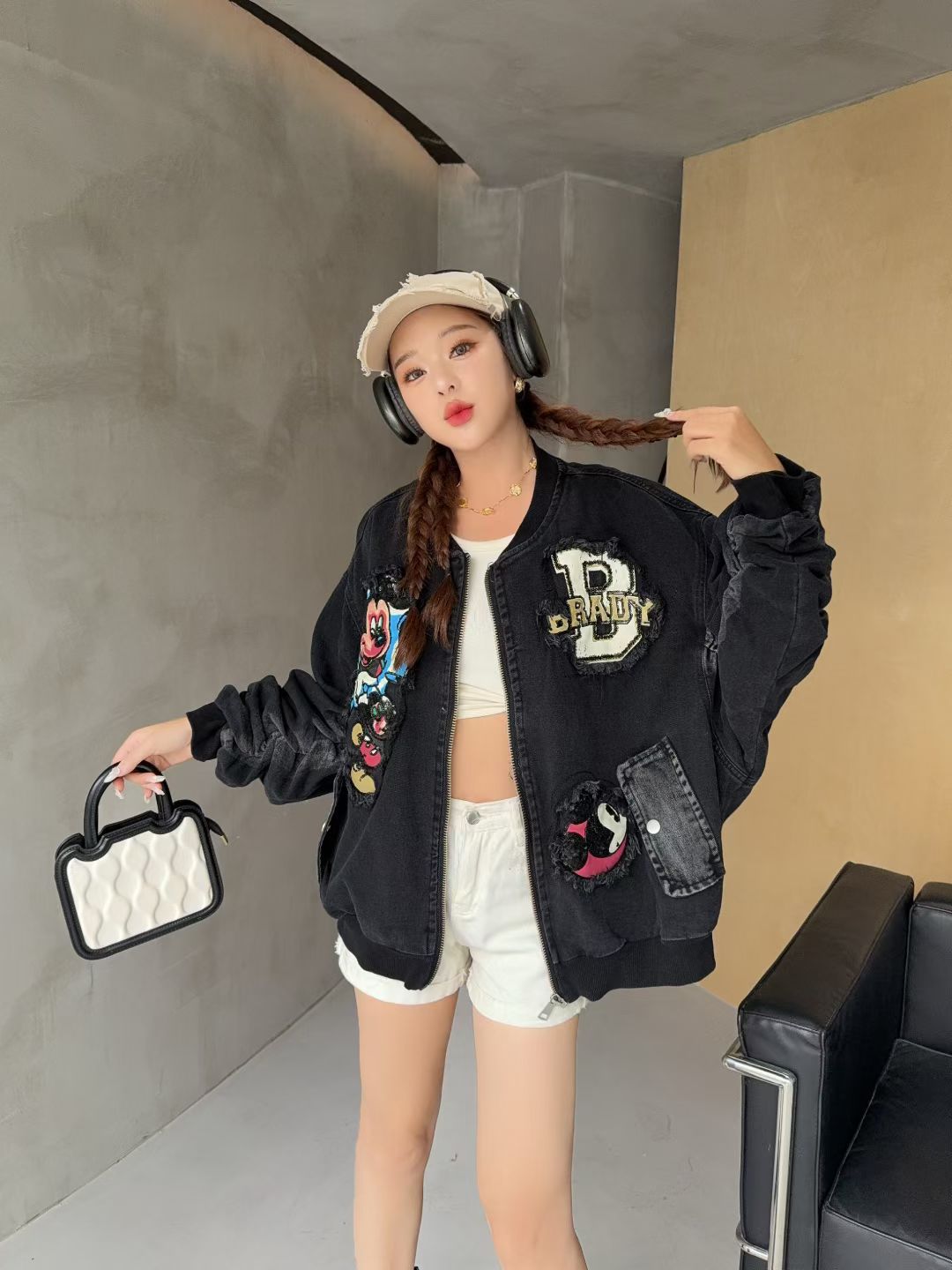Thailand Chaopai 2025 Spring and Autumn New Loose Large Edition Heavy Industry Embroidery Mickey Cartoon Baseball Suit Short Coat Women