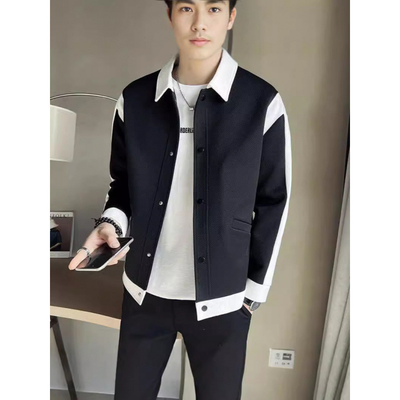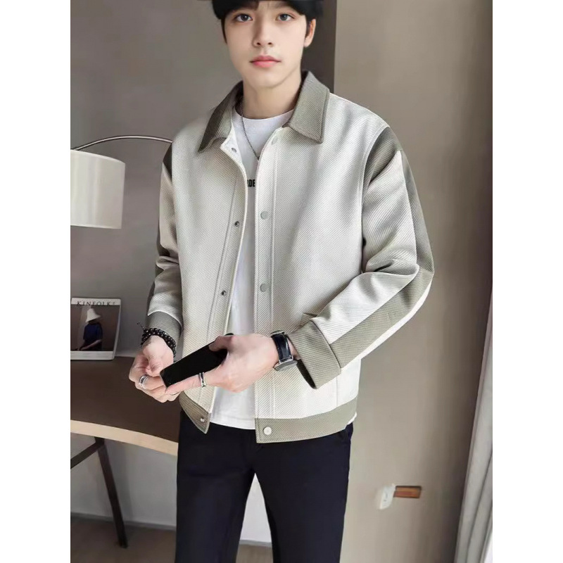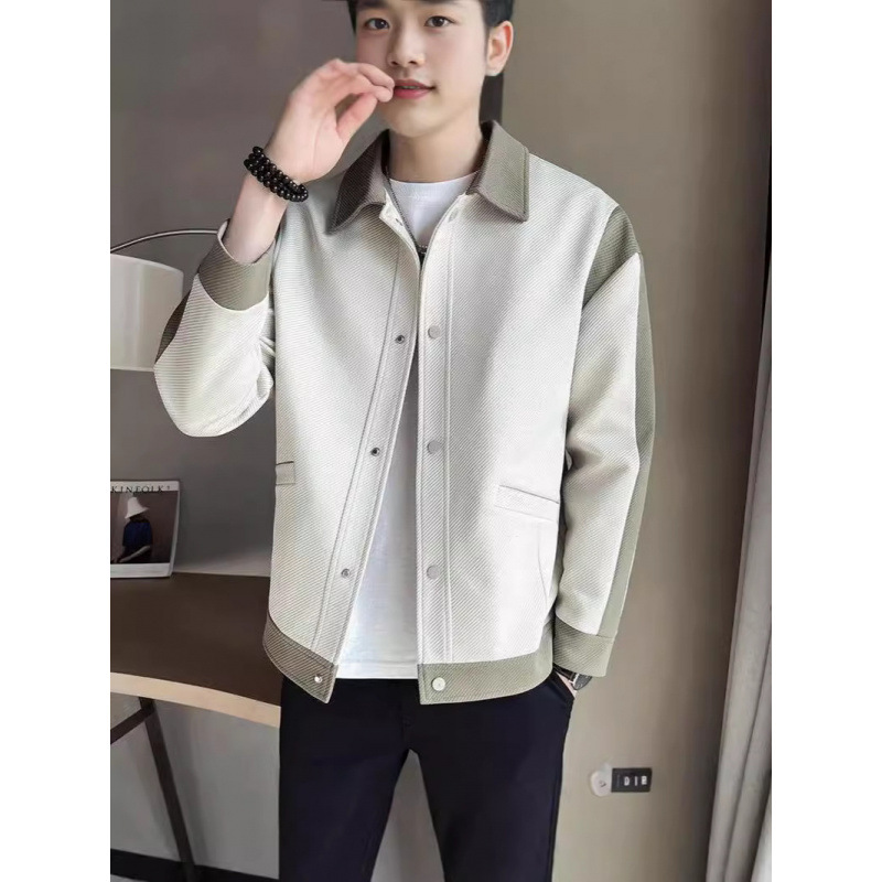 Color matching jacket for men's spring and autumn oversize tooling style hoodless couple China-Chic Japanese style stand collar jacket