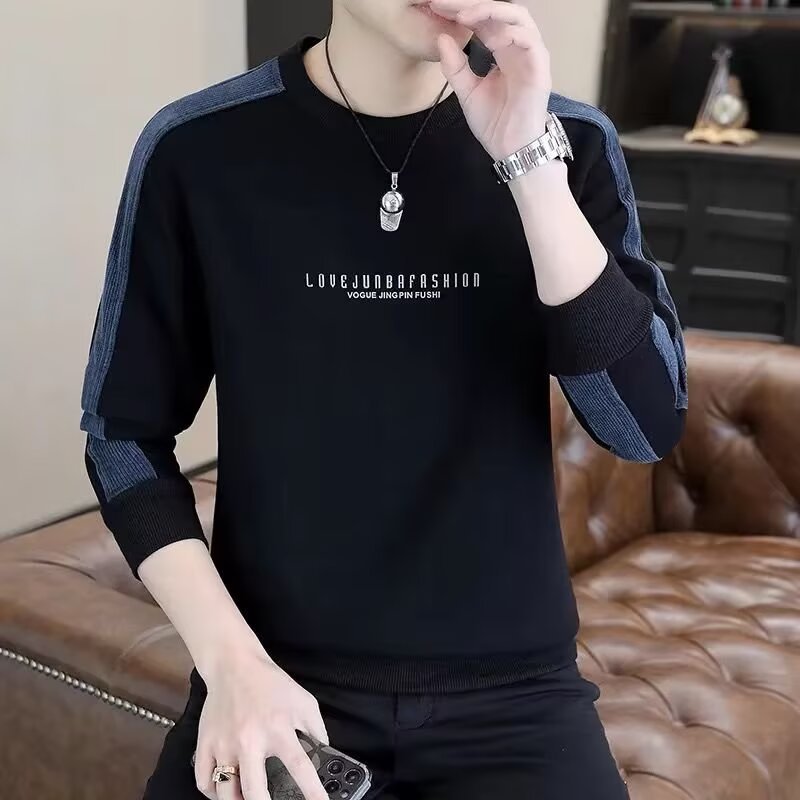 2025 new spring and autumn hoodie men's round neck loose long sleeved T-shirt youth student trendy handsome versatile top