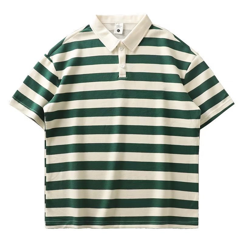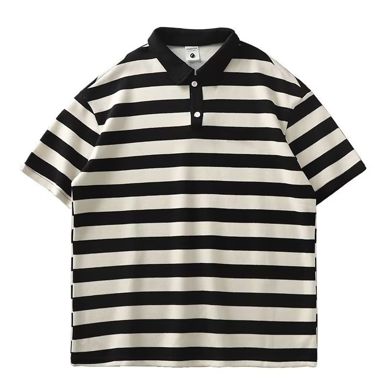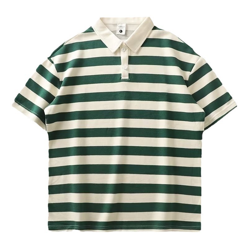 Japanese striped short sleeved polo shirt for men and women 2024 new summer heavyweight collar T-shirt casual half sleeved men's top