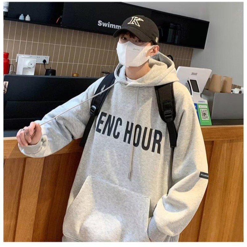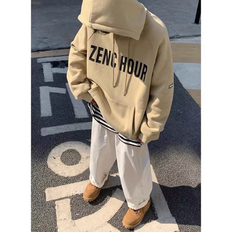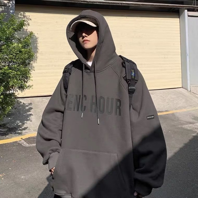 Hoodie men ins trendy spring and autumn thin velvet men's top hooded loose versatile coat autumn 2023 new trend