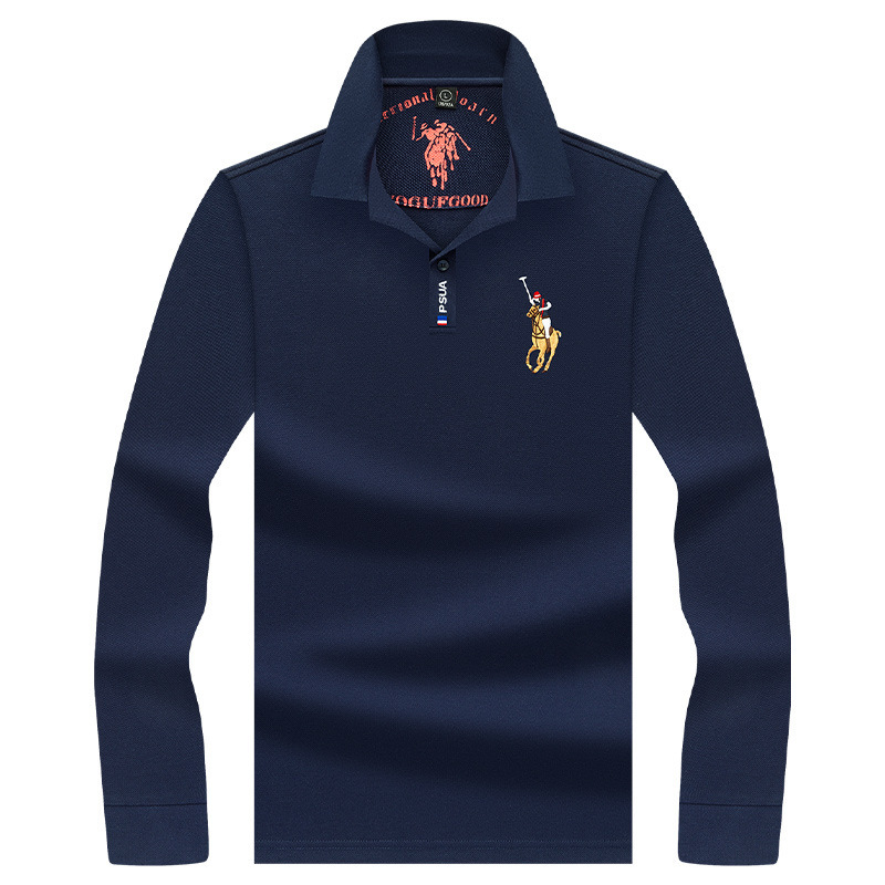 Paul's official pure cotton long sleeved polo shirt for men, middle-aged and high-end, embroidered T-shirt with collar, dad's spring trend T-shirt