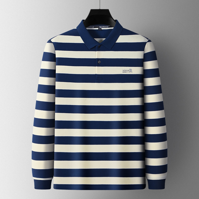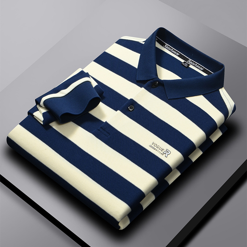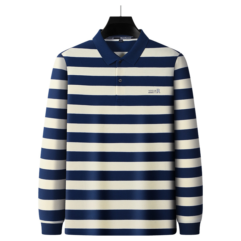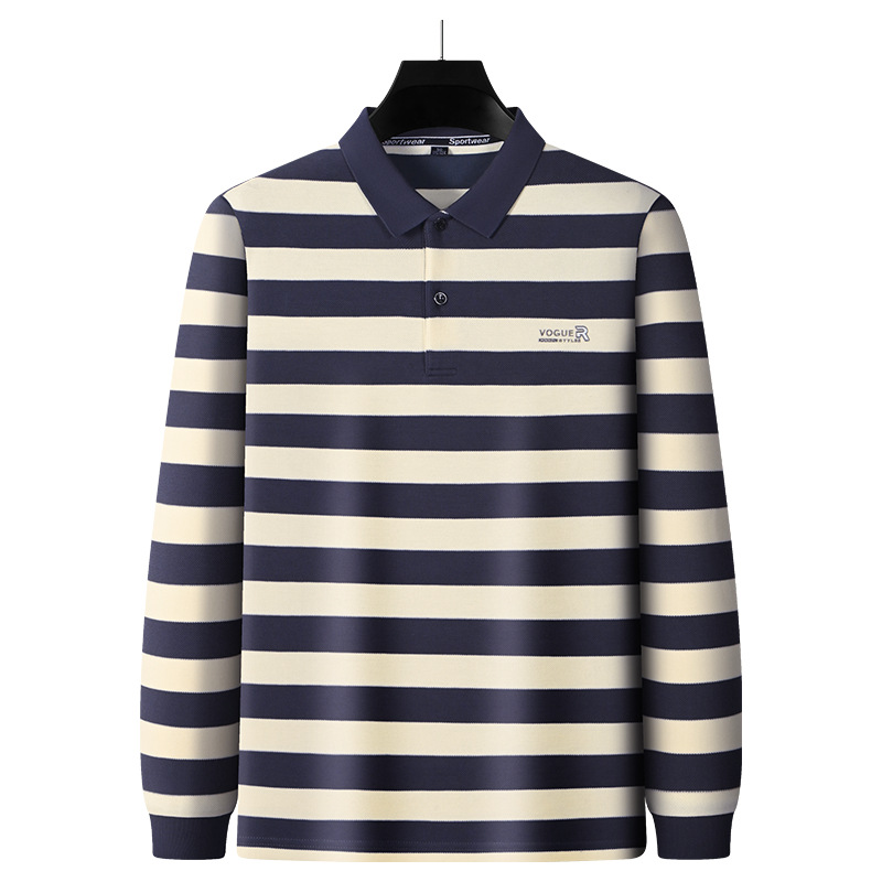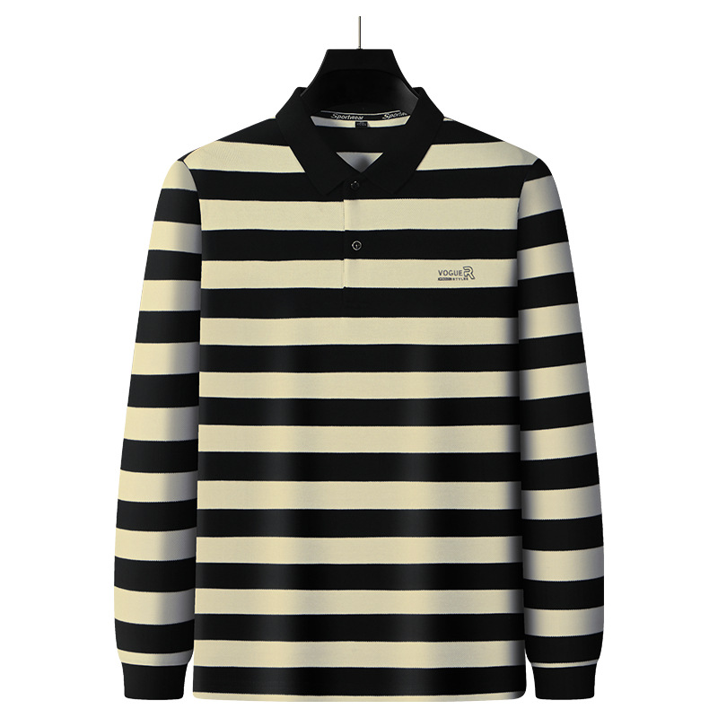 Alibaba Tiger Men's Business Stripe Polo Shirt Men's Black and White Stripe Flip Collar Long Sleeve In Stock Bead Stripe Casual Men