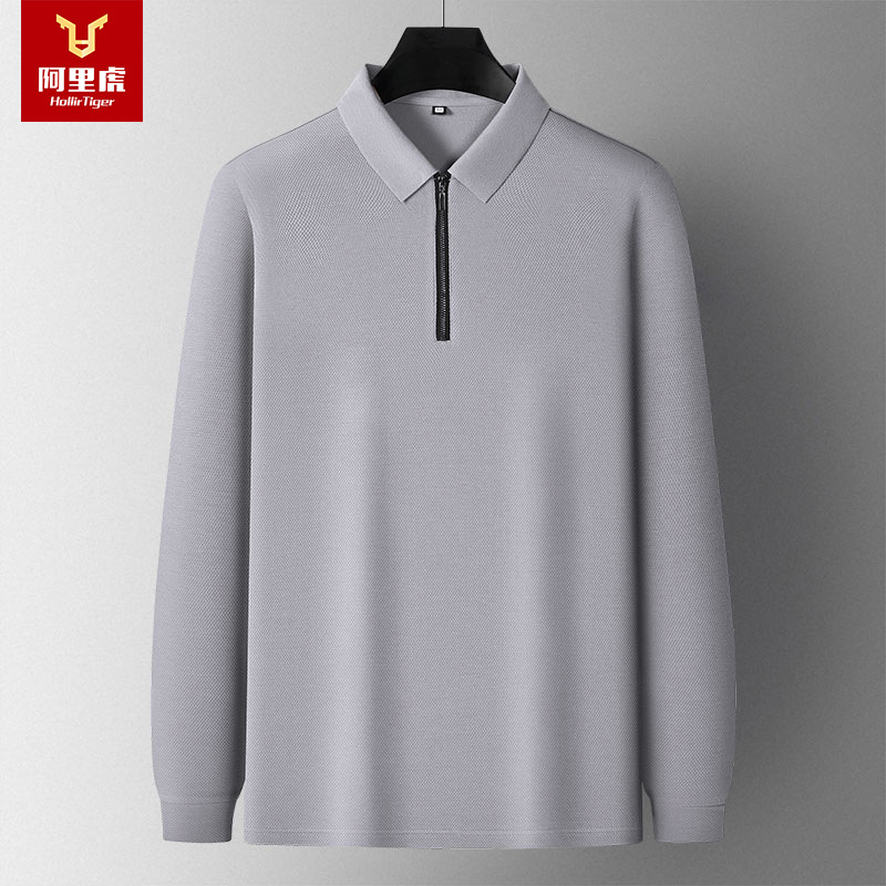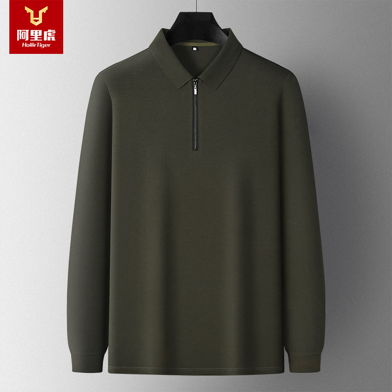 Alibaba Tiger Men's Autumn Counter Same Style Long Sleeve Shirt for Men, Business Casual, Middle aged Men, Pineapple Velvet Polo Shirt for Men