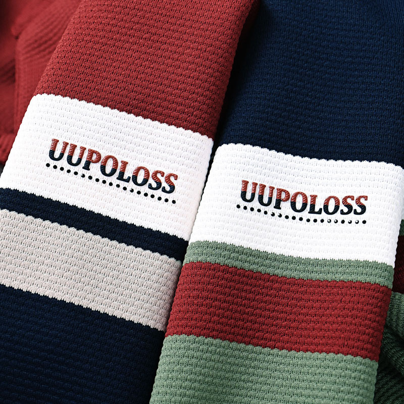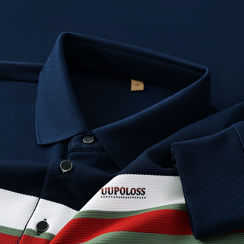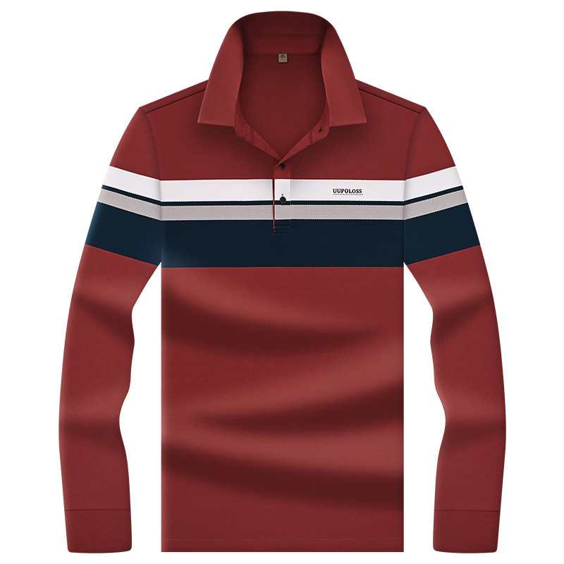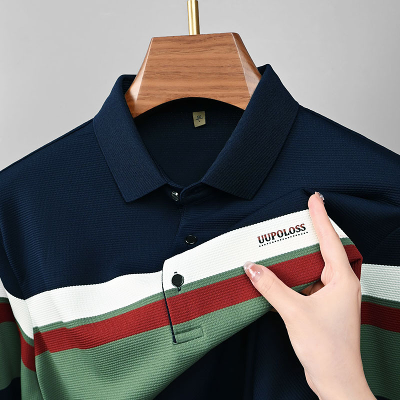 High end light luxury brand men's T-shirt new lapel long sleeved top t high-end striped contrasting men's Polo shirt