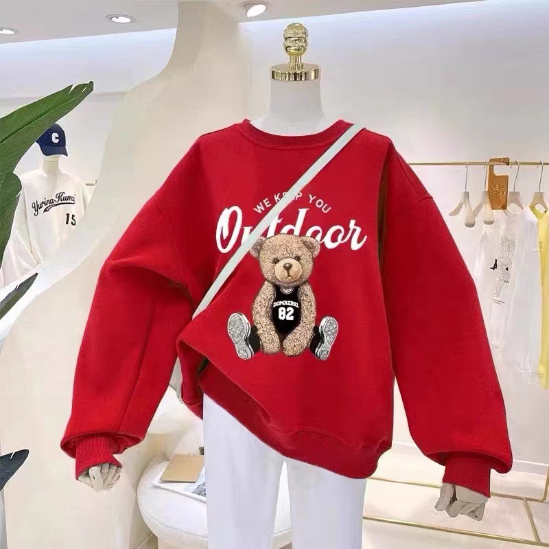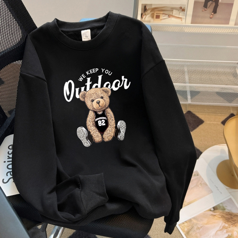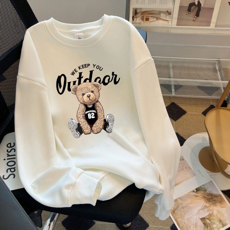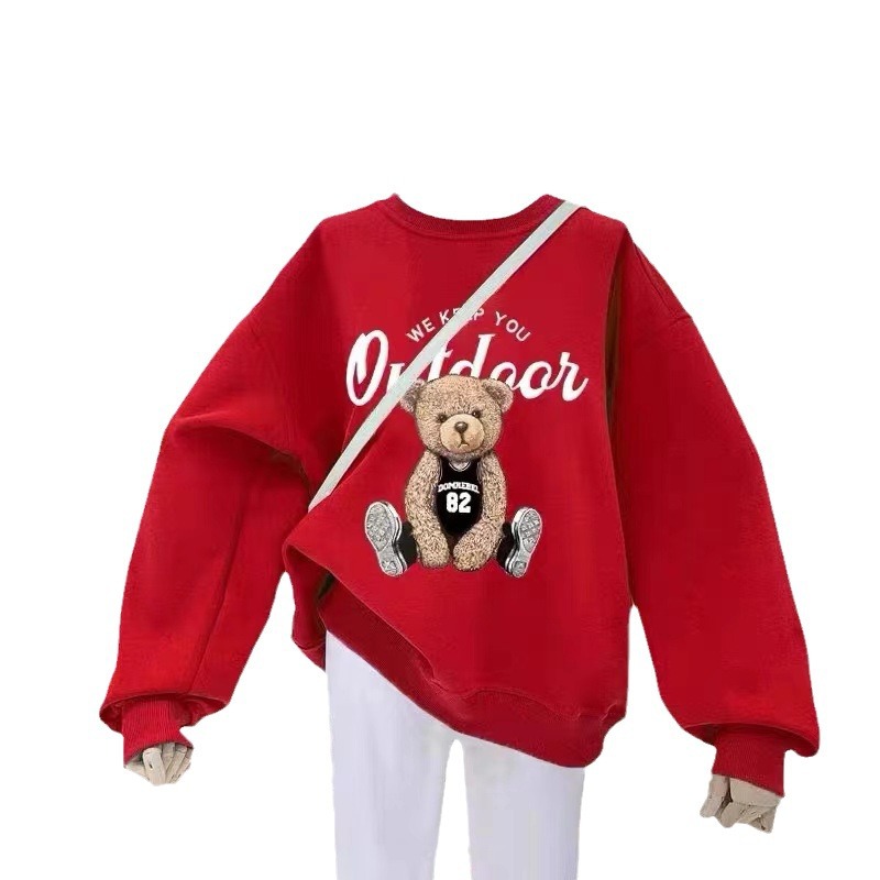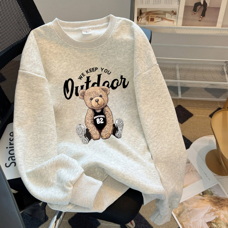Round neck hoodie for women, thin style, spring and autumn 2024 new item, cartoon loose and lazy style, stylish and versatile top for women
