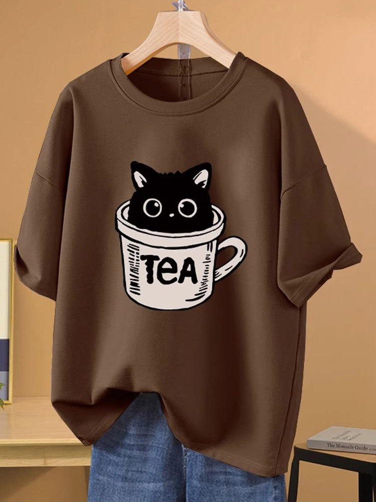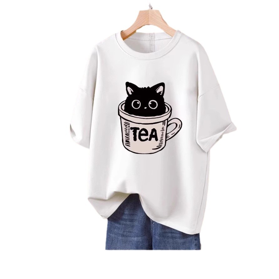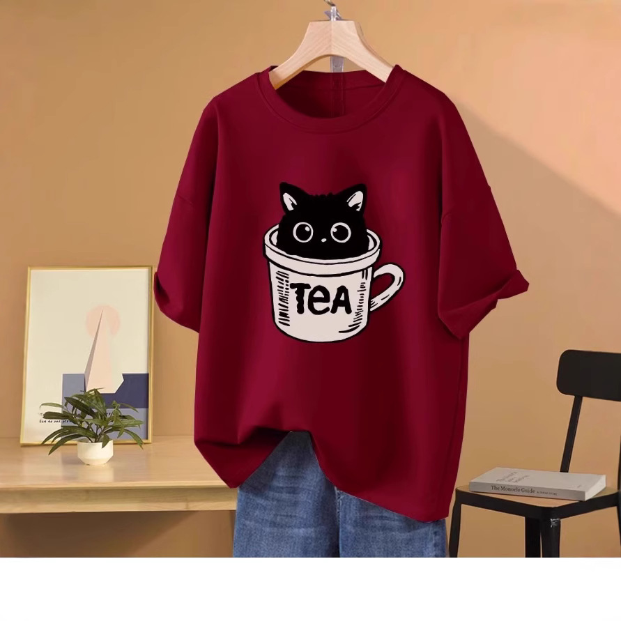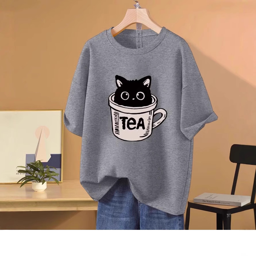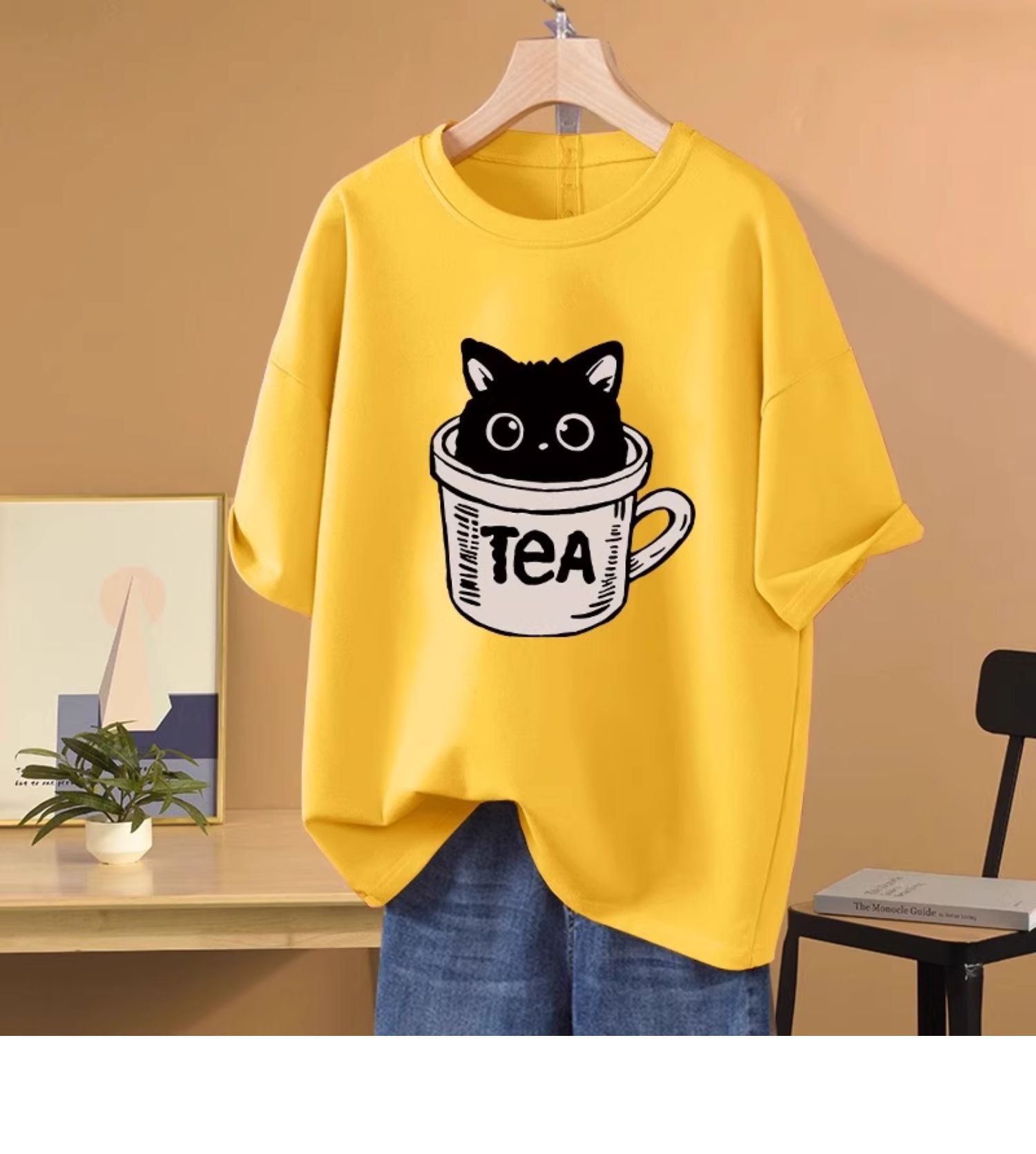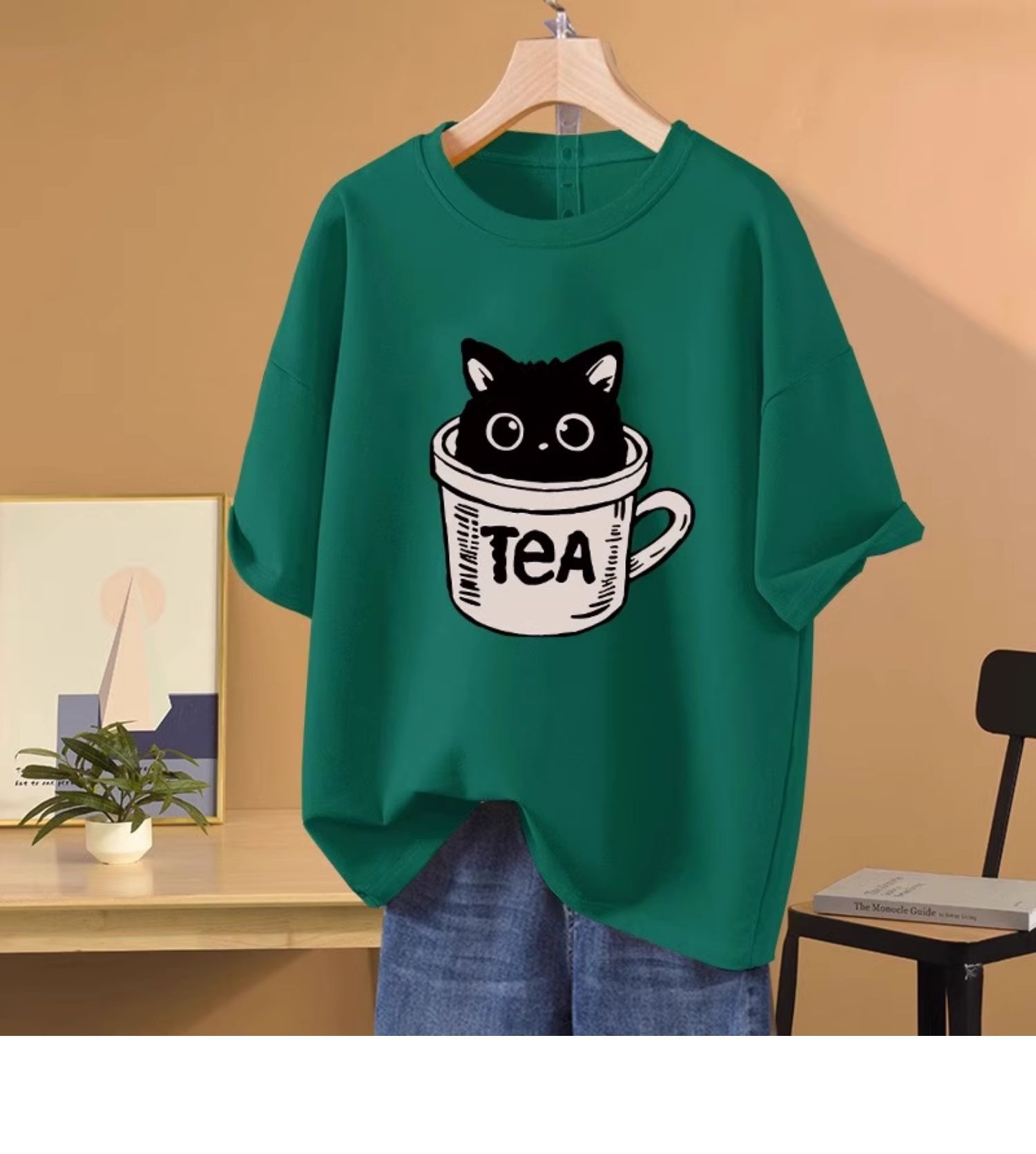 Short sleeved t-shirt women's cartoon 2025 summer new item, fat mm plus size, loose, belly covering, hidden meat half sleeved t-shirt top, trendy