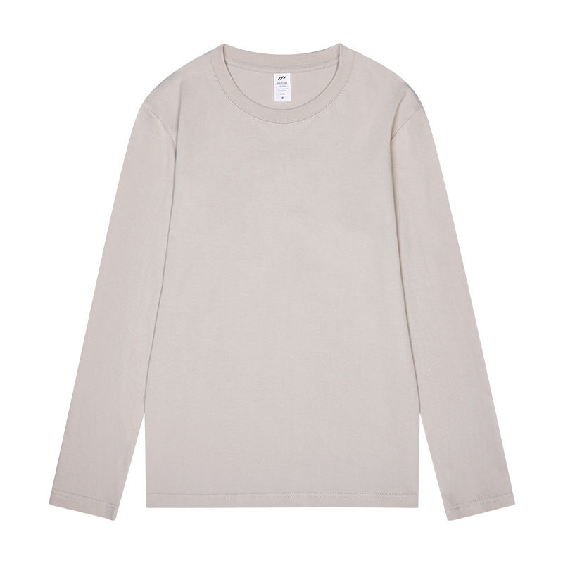 180g autumn Xinjiang combed polyester heavyweight round neck solid color long sleeved men's T-shirt loose base T-shirt men's clothing