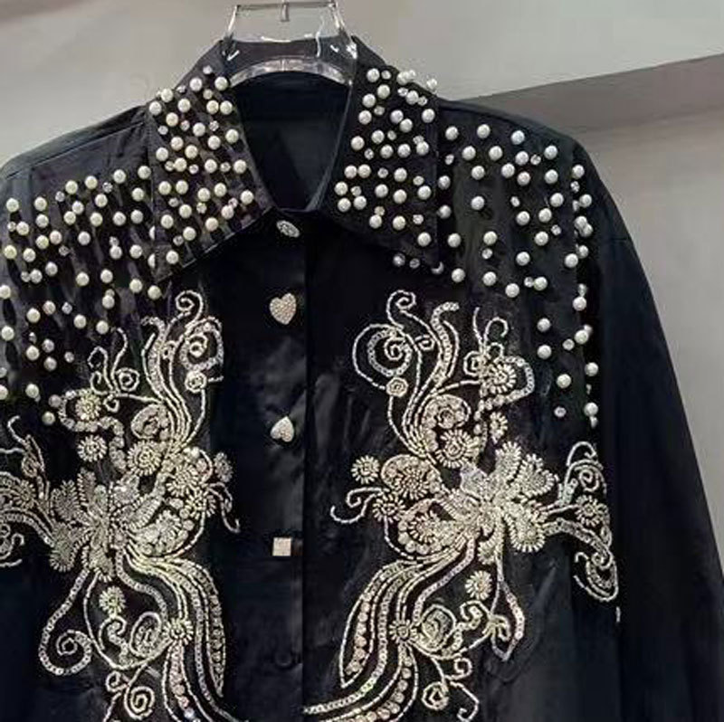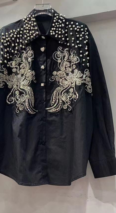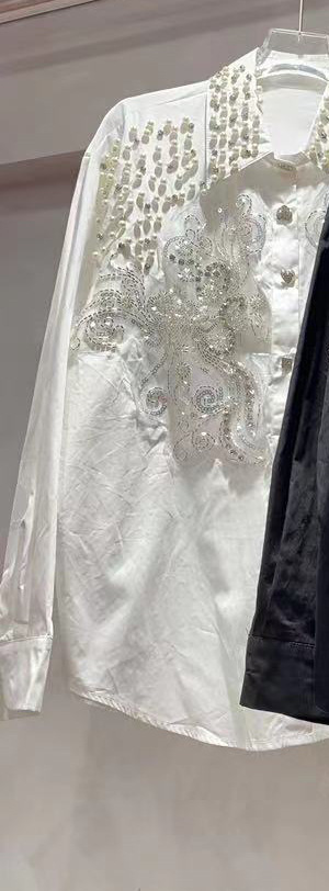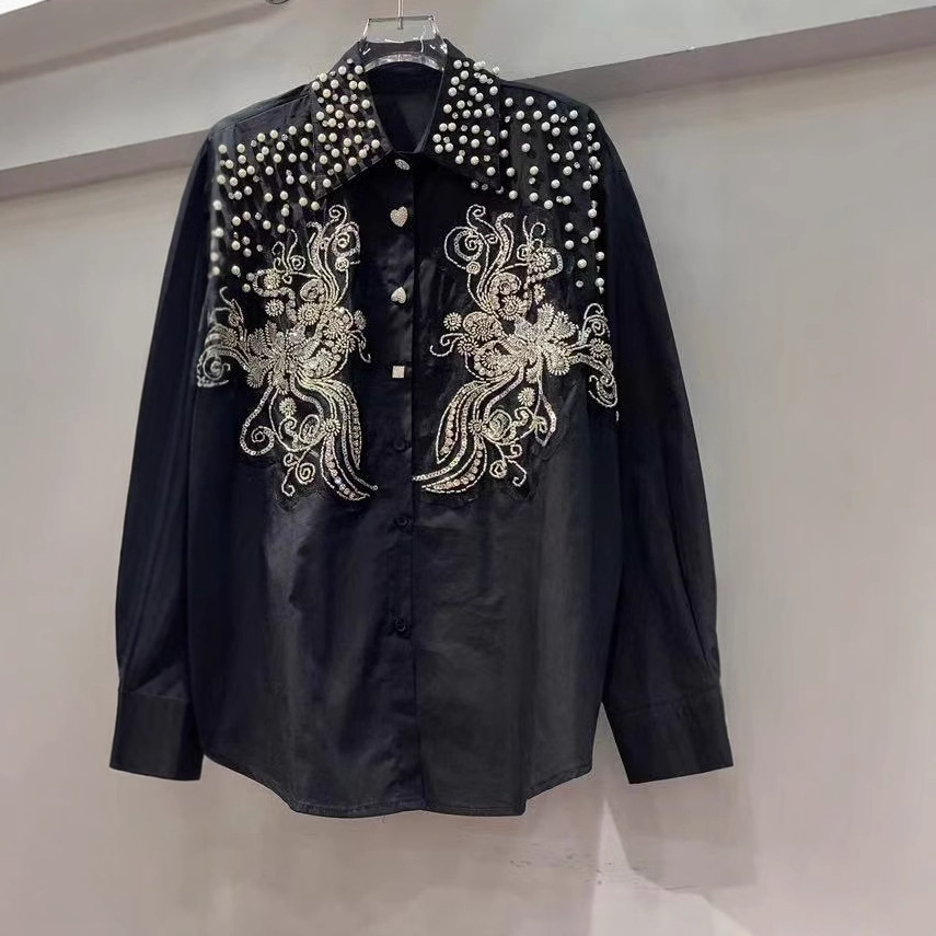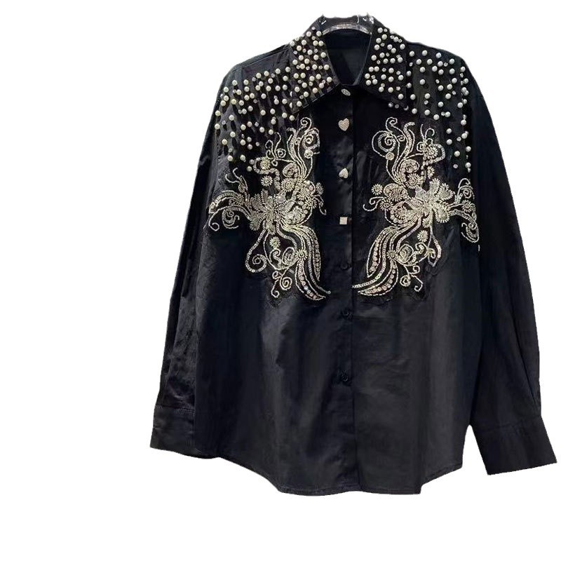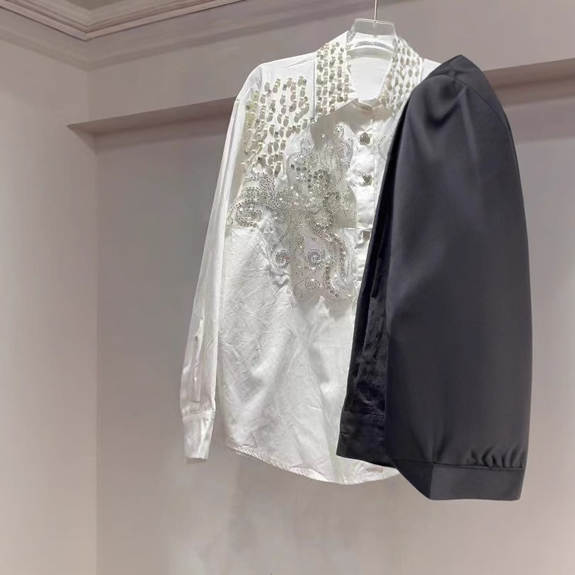 Fashion Versatile Shirt 2025 New Women's Spring/Summer Hot Style Western Style Medium Long Style New Chinese Symmetrical Diamond Flower Shirt