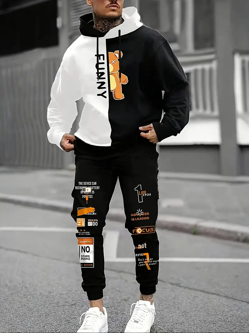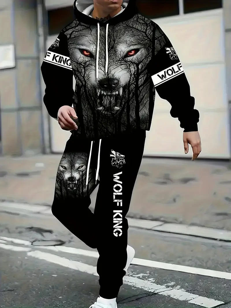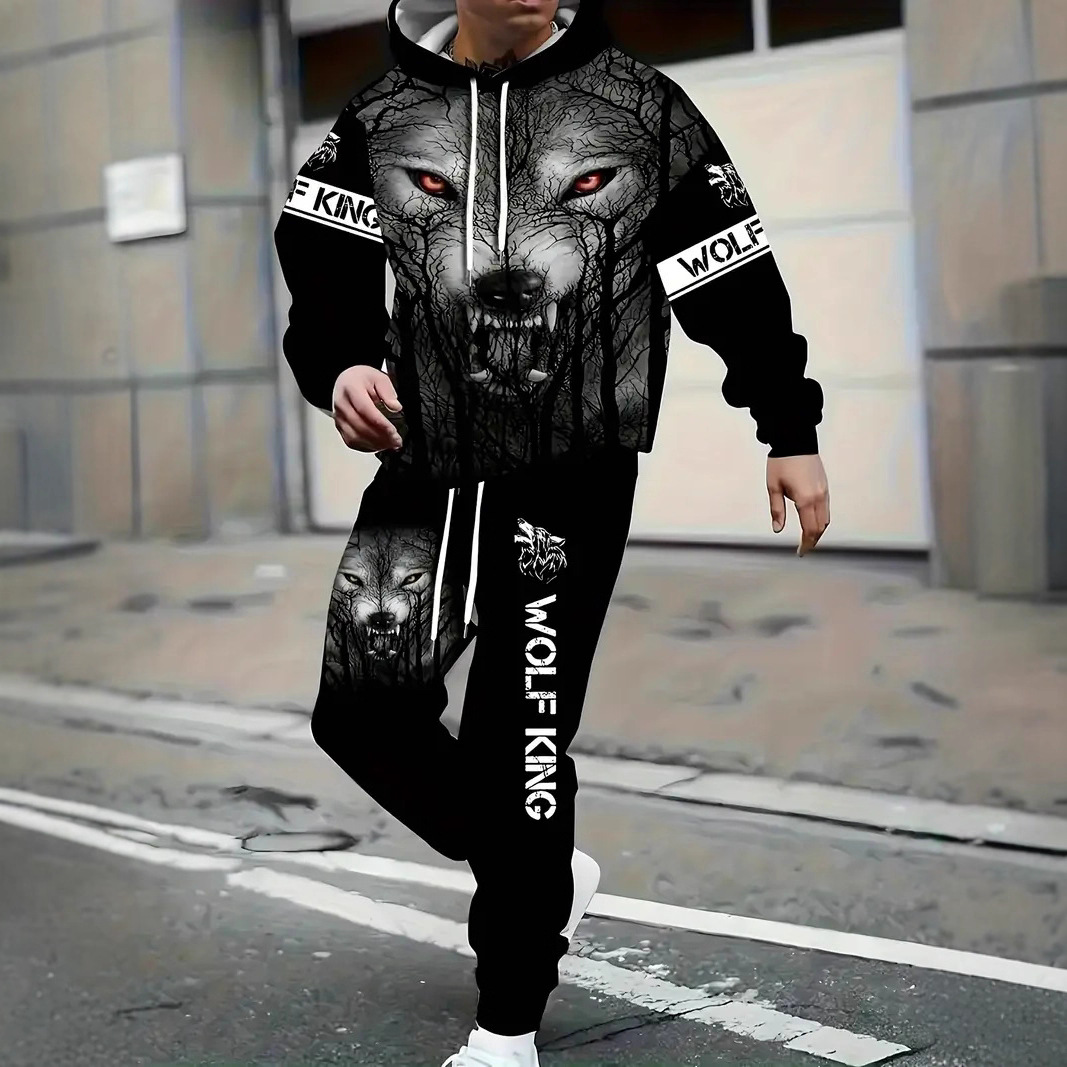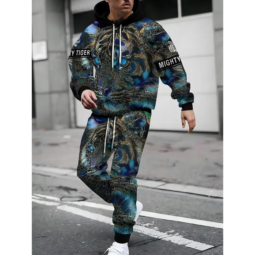 Cross border autumn and winter American style hooded 3D digital printed sweatshirt jacket men's trendy hoodie sports suit men