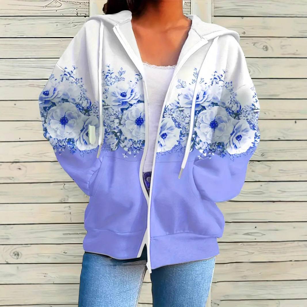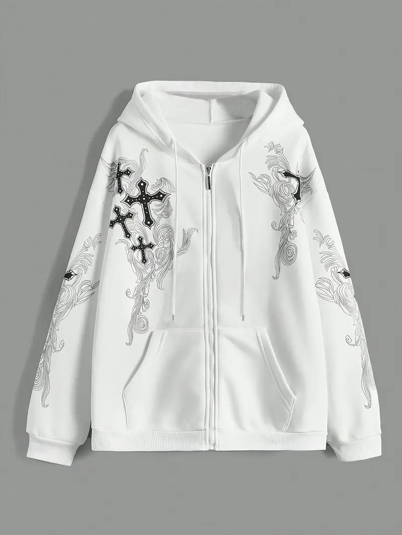 Cross border new men's and women's zipper hoodie spider retro pattern printed zipper top sweatshirt sweatshirt