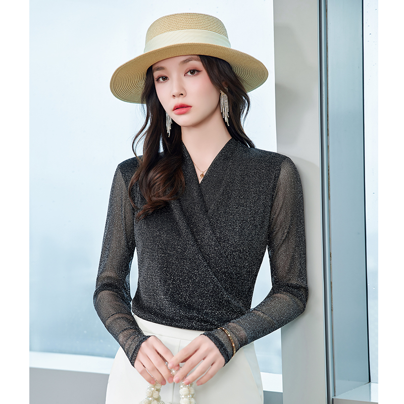 Design sense, niche temperament, V-neck T-shirt for women in early autumn 2025, new fashionable and stylish casual versatile commuting base shirt