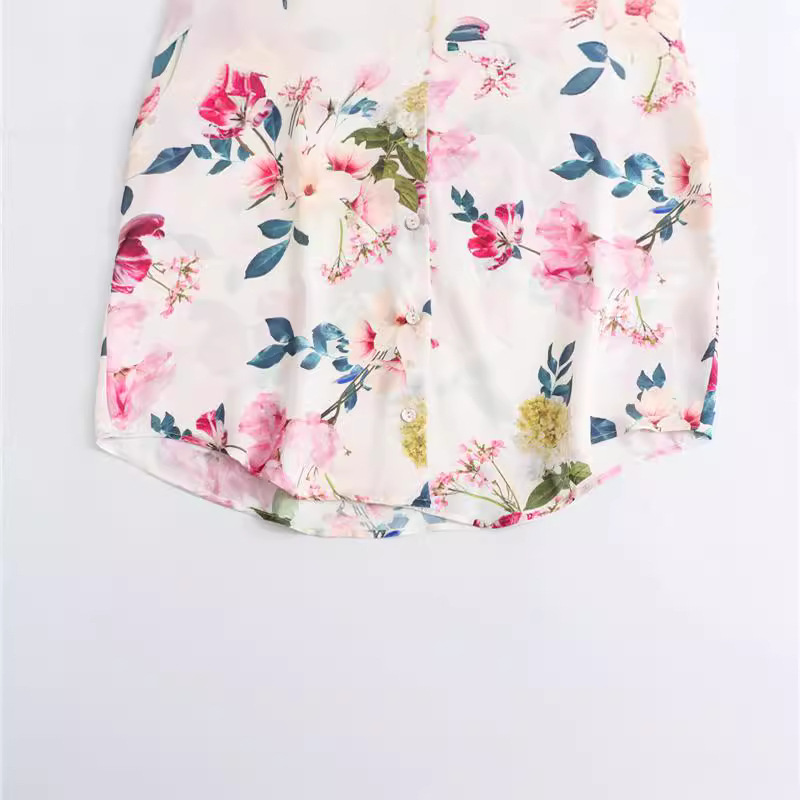 Foreign Trade 2024 Spring New Women's Clothing European and American Style Silk Texture Versatile Loose Printed Shirt for Women 2248802