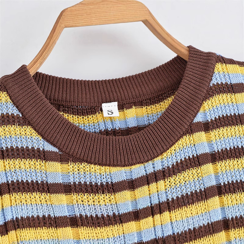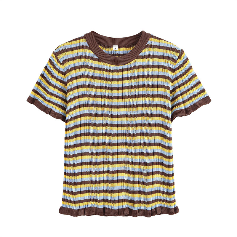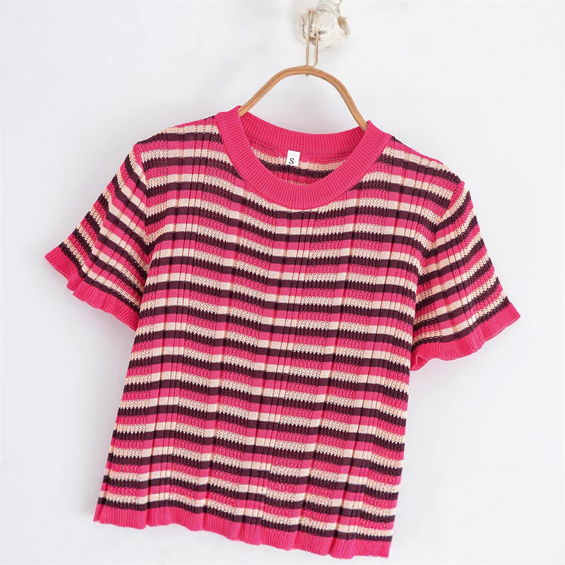 New European and American style short sleeved striped decorative top for spring 2025 foreign trade, simple and versatile design, fashionable T-shirt