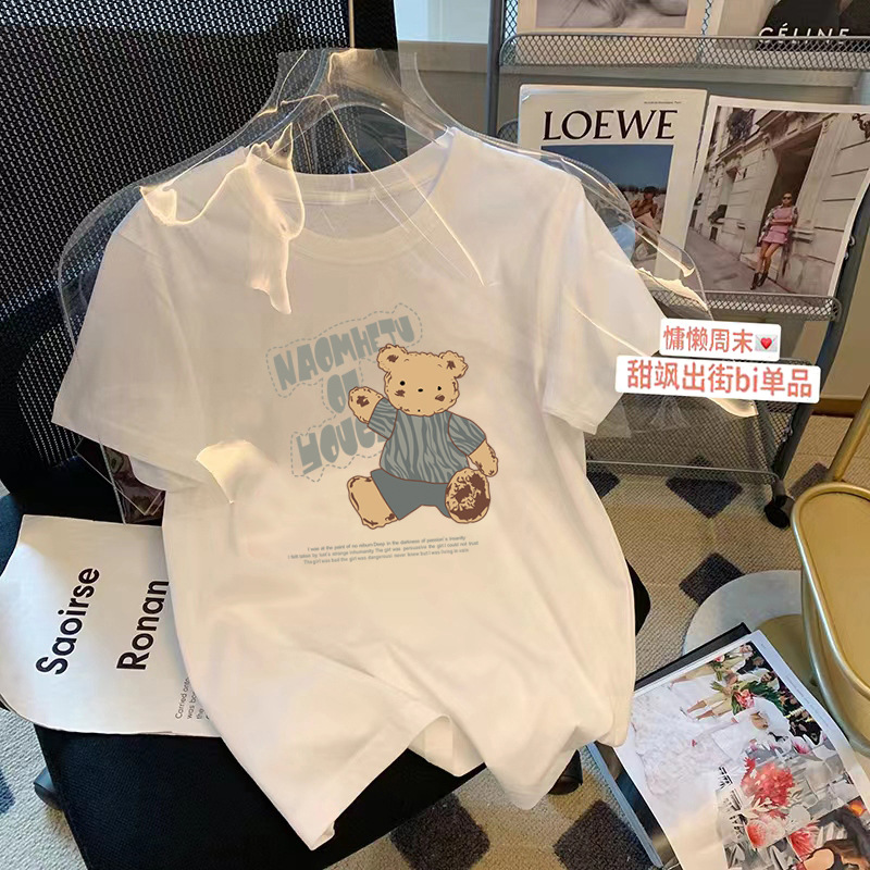 White T-shirt women's short sleeved new 2024 spring and summer round neck versatile loose mid long style half sleeved clothes ins trend
