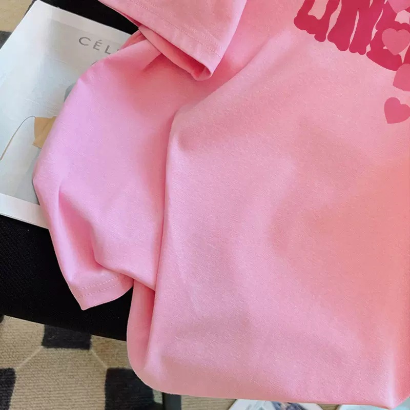 Pink short sleeved t-shirt for women in summer 2023, European style large edition, stylish small shirt, medium to long T-shirt, half sleeved top, Instagram trend