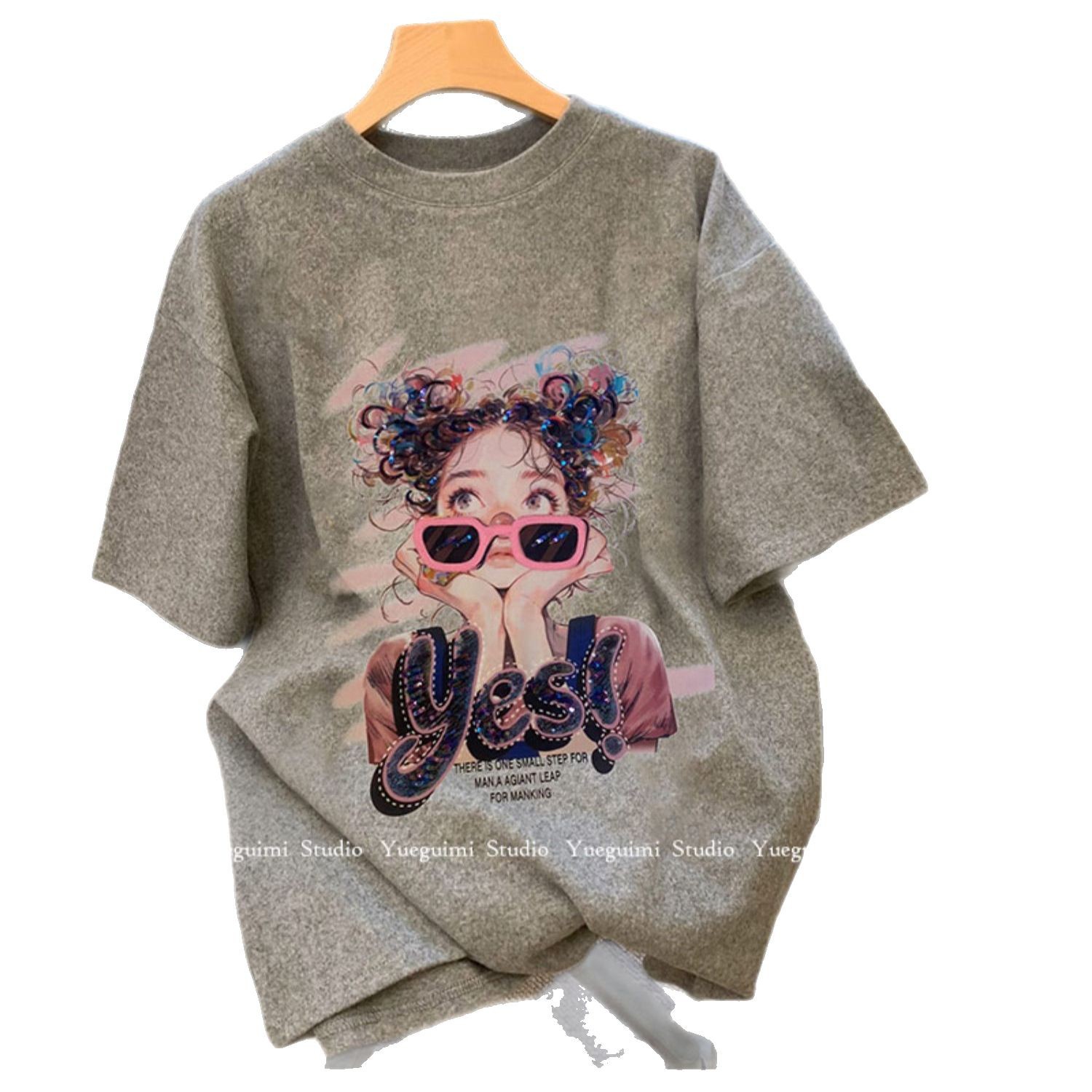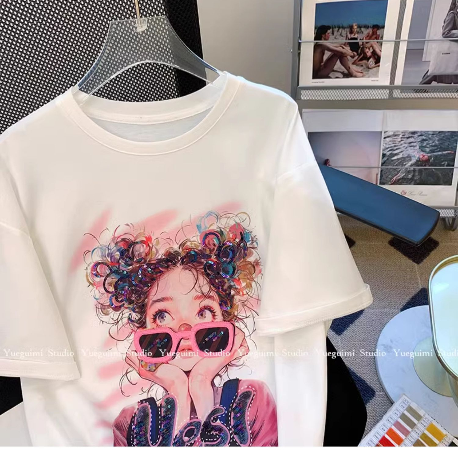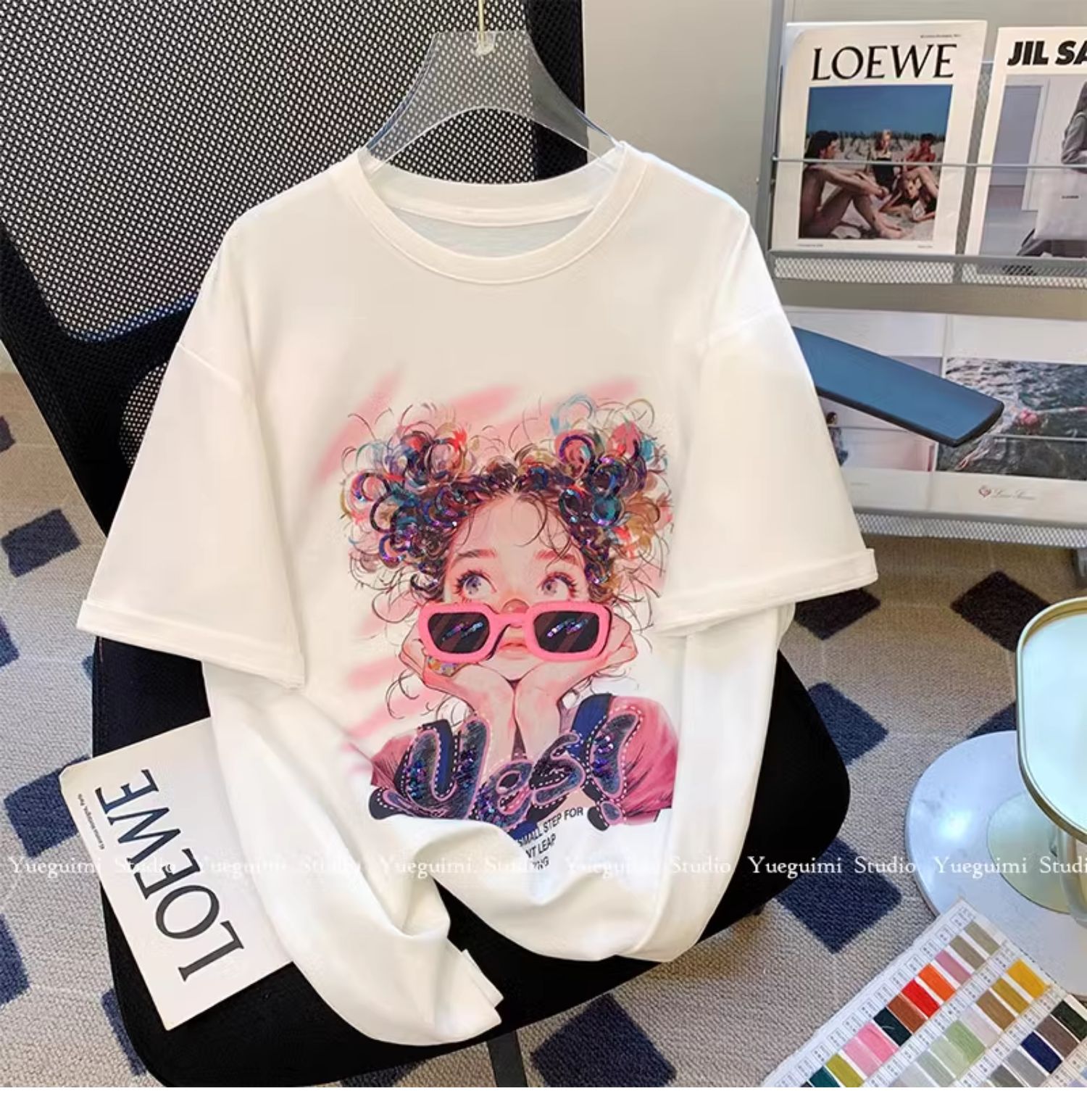 White Fun Girl Short sleeved T-shirt Women's Summer European Large Edition Western Style Loose Casual T-shirt Top Clothes Ins Trendy
