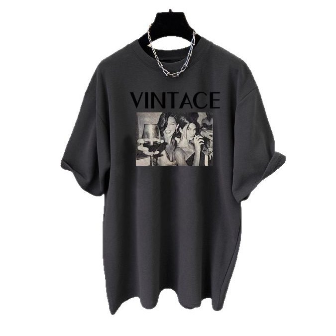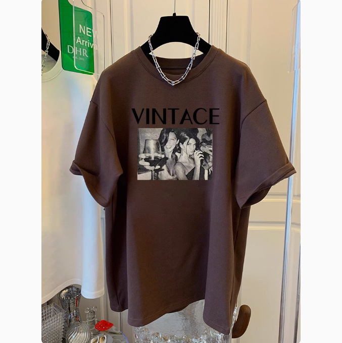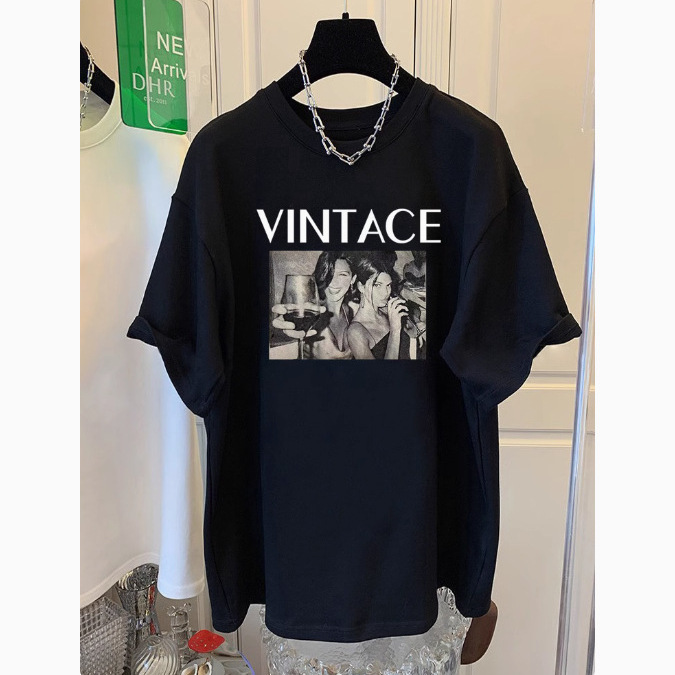 European American fashion brand short sleeved T-shirt for women's summer 2025 new mid to long round neck versatile casual anti-aging top