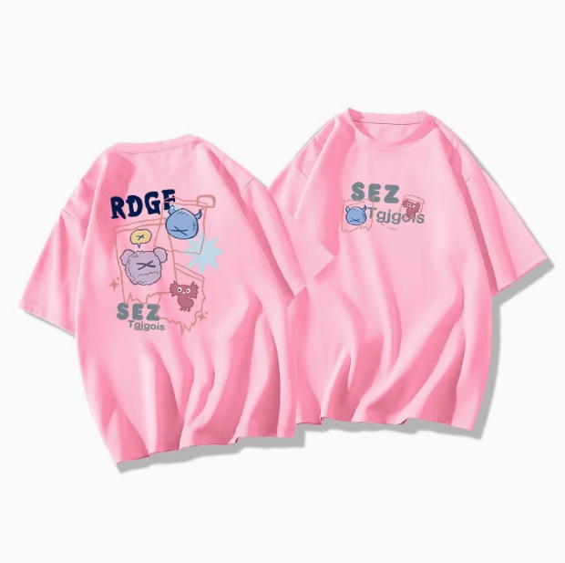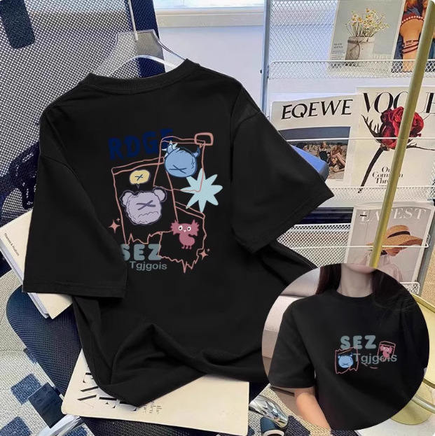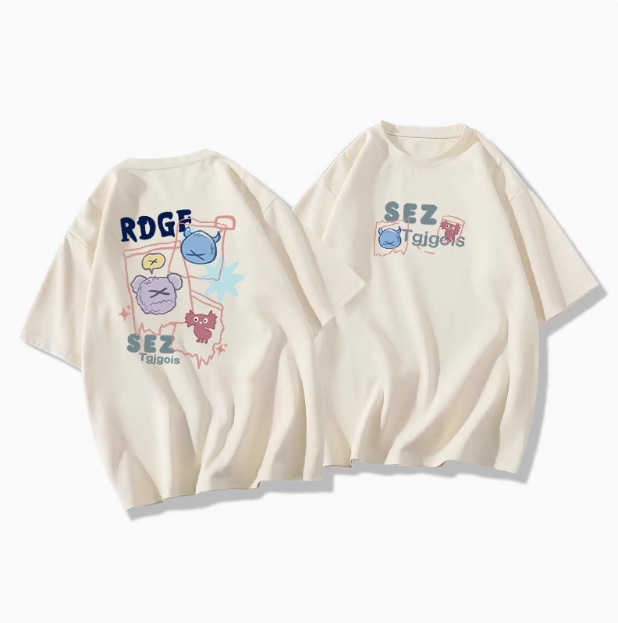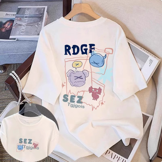 White cartoon short sleeved t-shirt for women in the summer of 2025, with a trendy round neck and loose fit, slimming mid length top