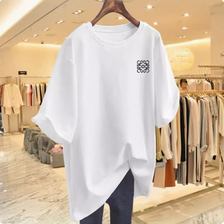 European style large edition short sleeved t-shirt for women, loose fit 2024 new round neck versatile mid to long length student outerwear, ins trend
