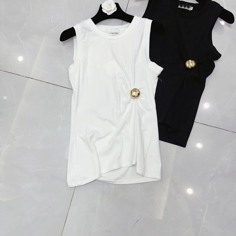 Thirteen Rows South Oil High Cargo Round Neck Pebble Gold Buckle Pinch Fold Waist Cotton Tank Top A3 # 8853