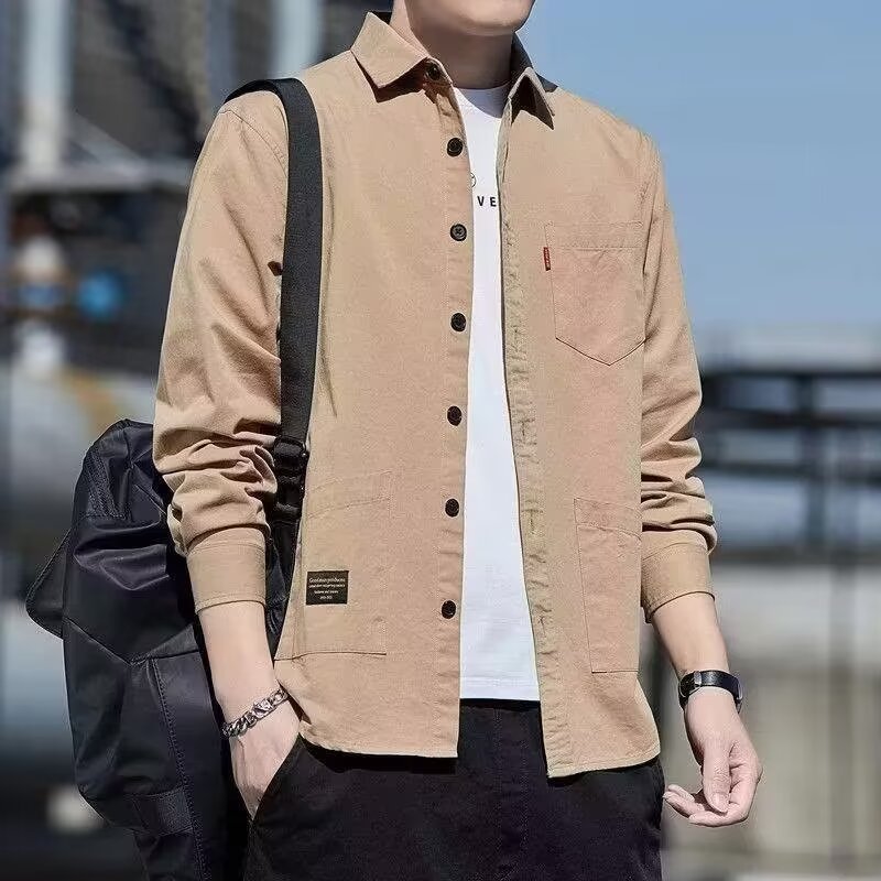 2025 Spring and Autumn Men's Shirt Long Sleeve workwear Cotton Trendy Shirt Inch Coat Men's Casual Top