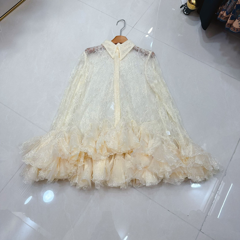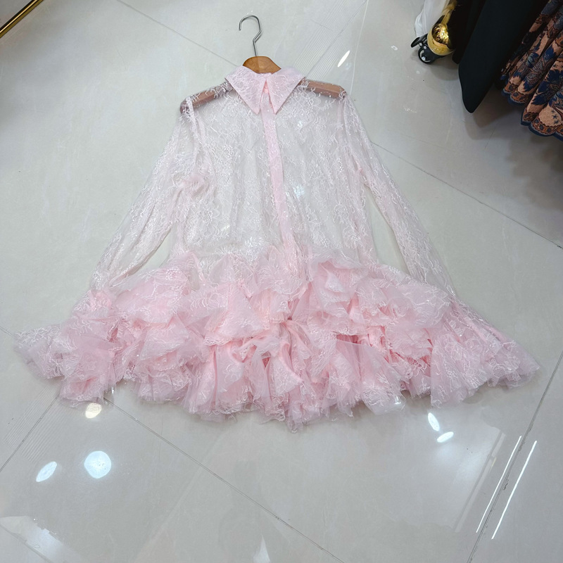 Thirteen Rows Australian niche heavy industry sequin bead lace horn long sleeved petal lapel shirt A2 # 8330