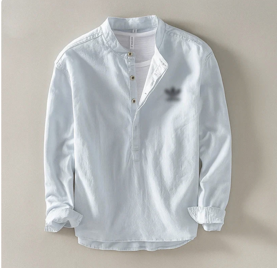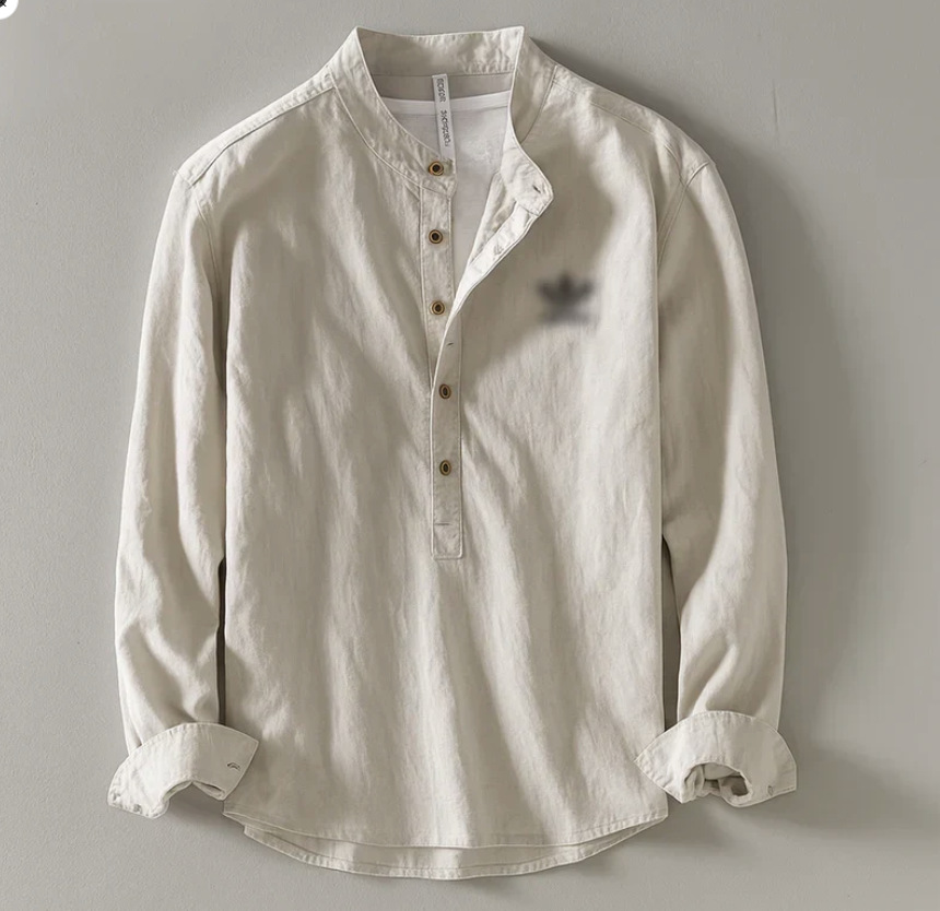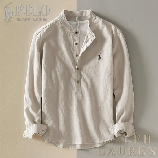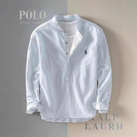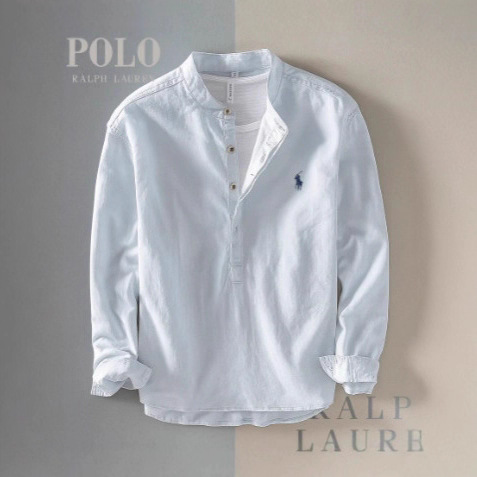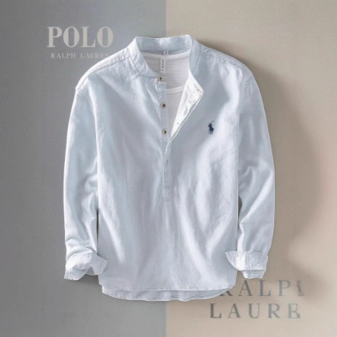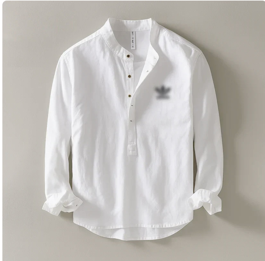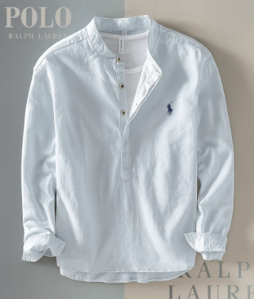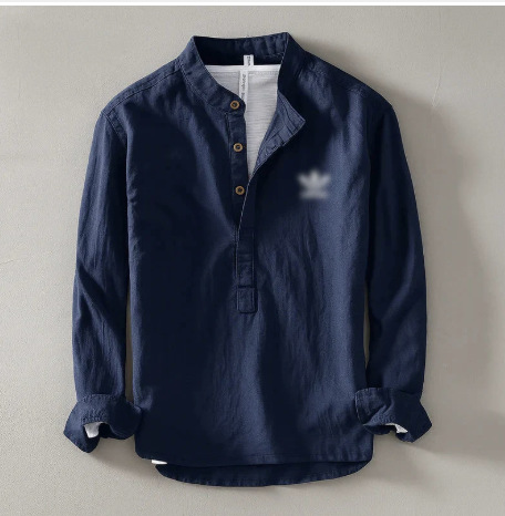 2025 shirt top men's casual shirt Korean version slim fit solid color stand up collar pullover commuting shirt men
