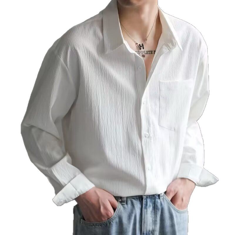 Solid color long sleeved shirt Japanese Hong Kong style ins loose shirt men's summer trend versatile jacket