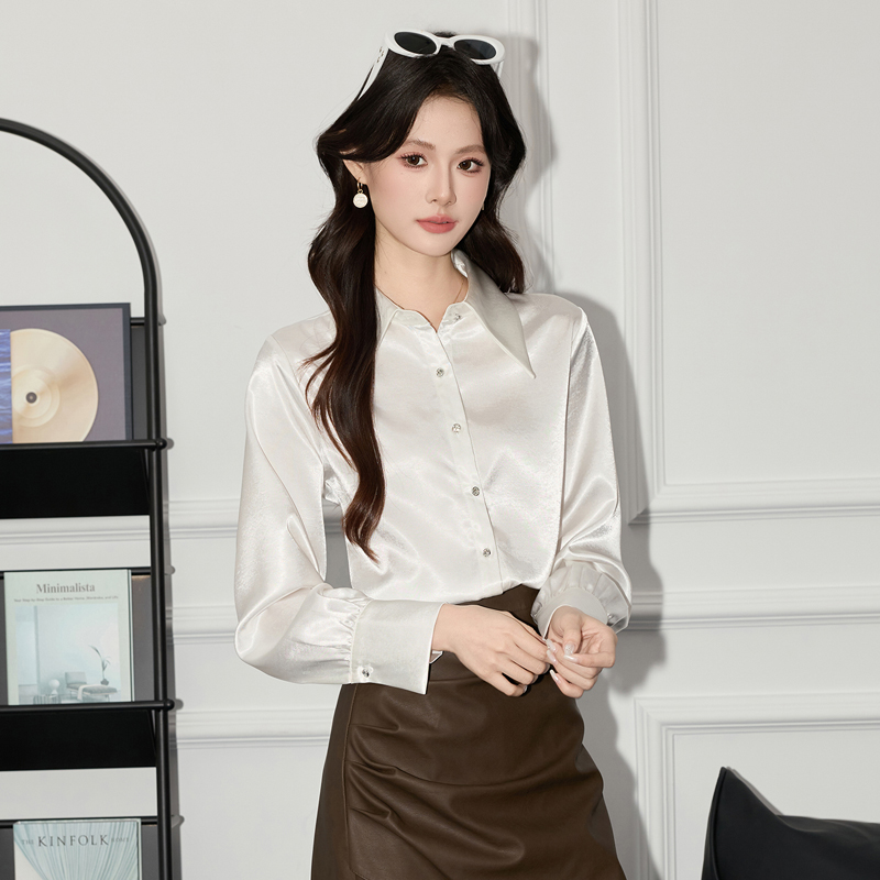 Simple and versatile pink shirt, women's 2025 autumn outfit, new design, niche temperament, casual long sleeved shirt