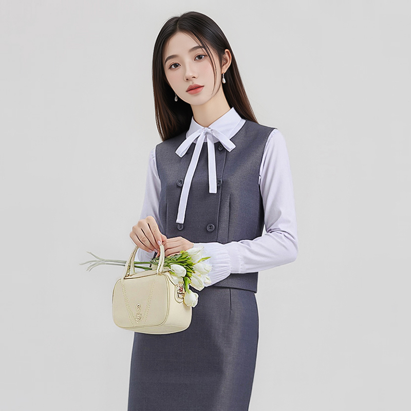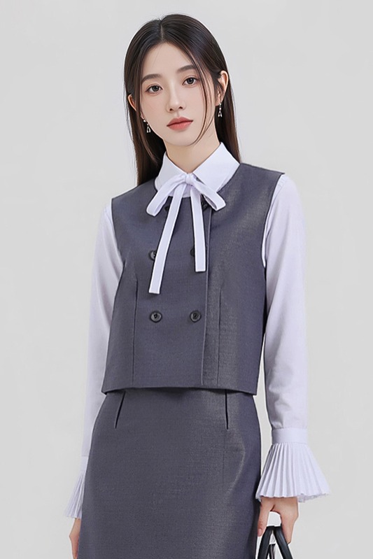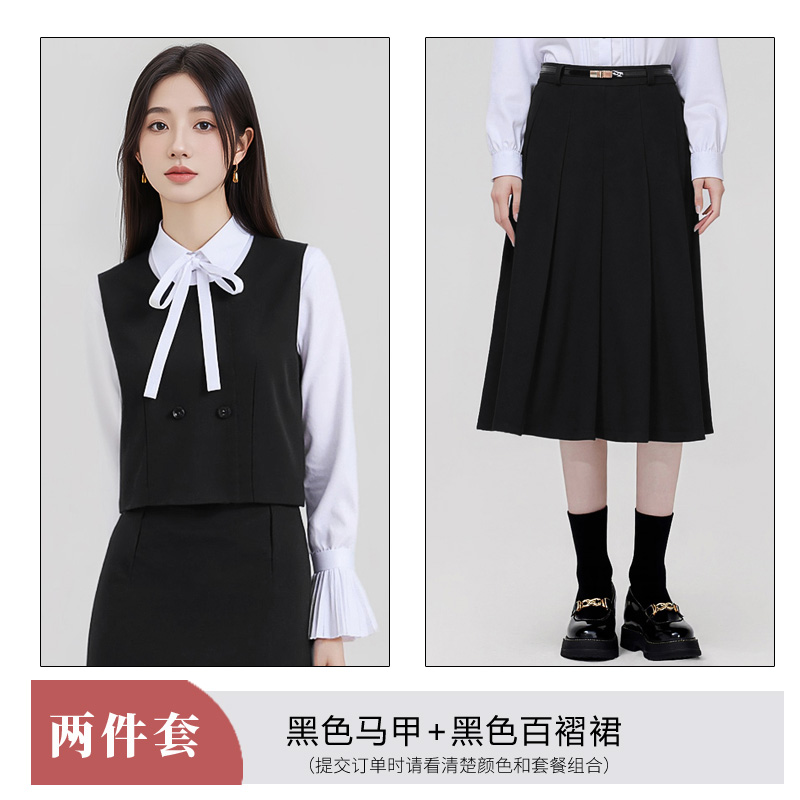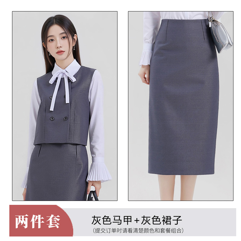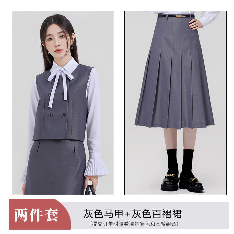 Short and petite gray vest dress set for women in autumn 2025, with a stylish and elegant design and sleeveless vest