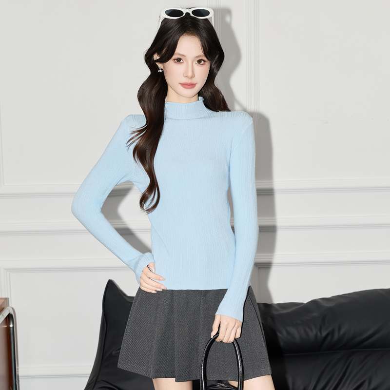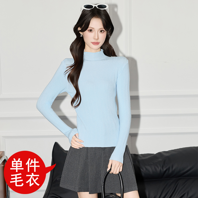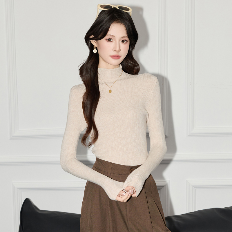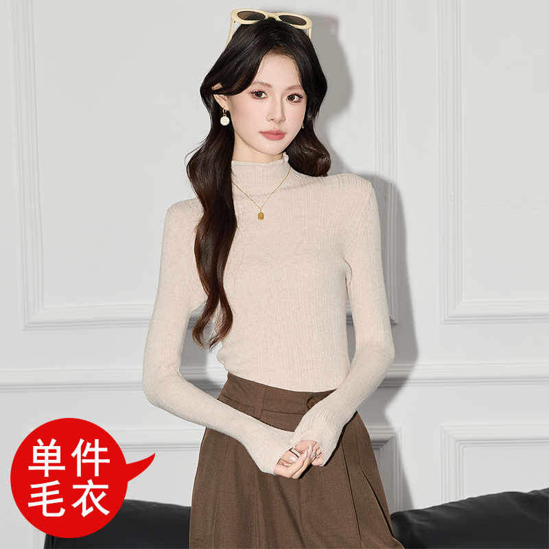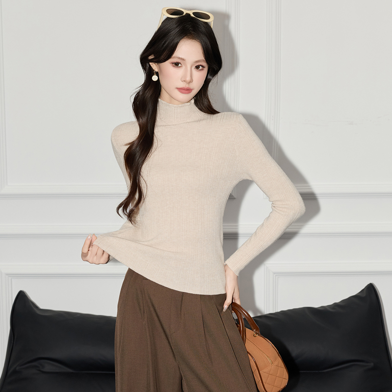 Temperament round neck sweater for women, autumn and winter new style, slim fit and versatile base shirt, small casual inner top