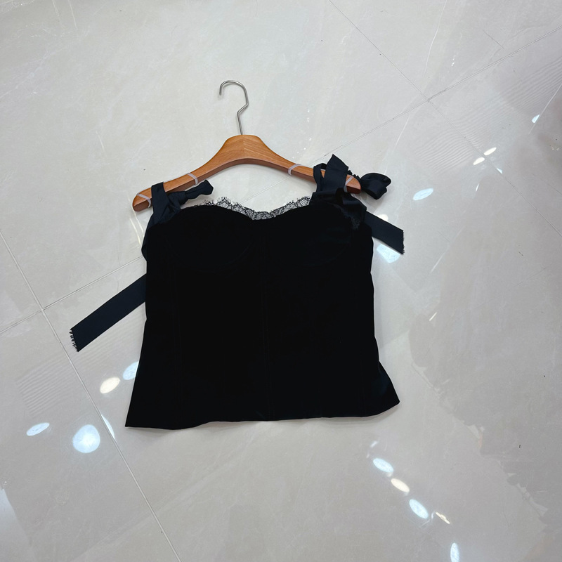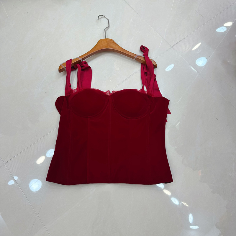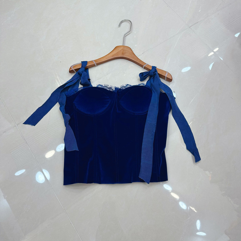 Thirteen line Australian French niche velvet patchwork lace bow suspender elegant retro top A1 # 8003