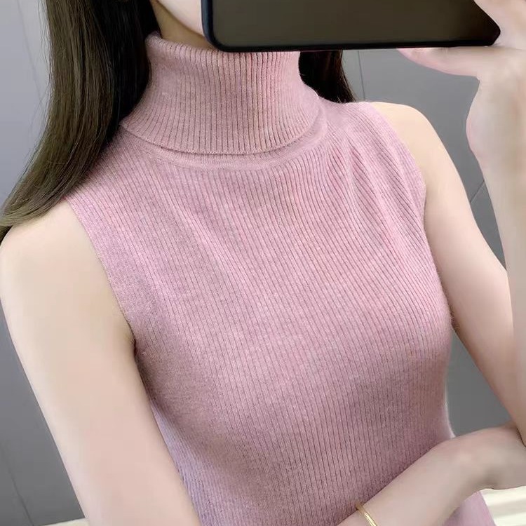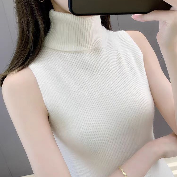 High neck vest for women in Spring and Autumn 2023, Ins super hot slim fit knit bottom shirt, sleeveless top for wearing on the outside