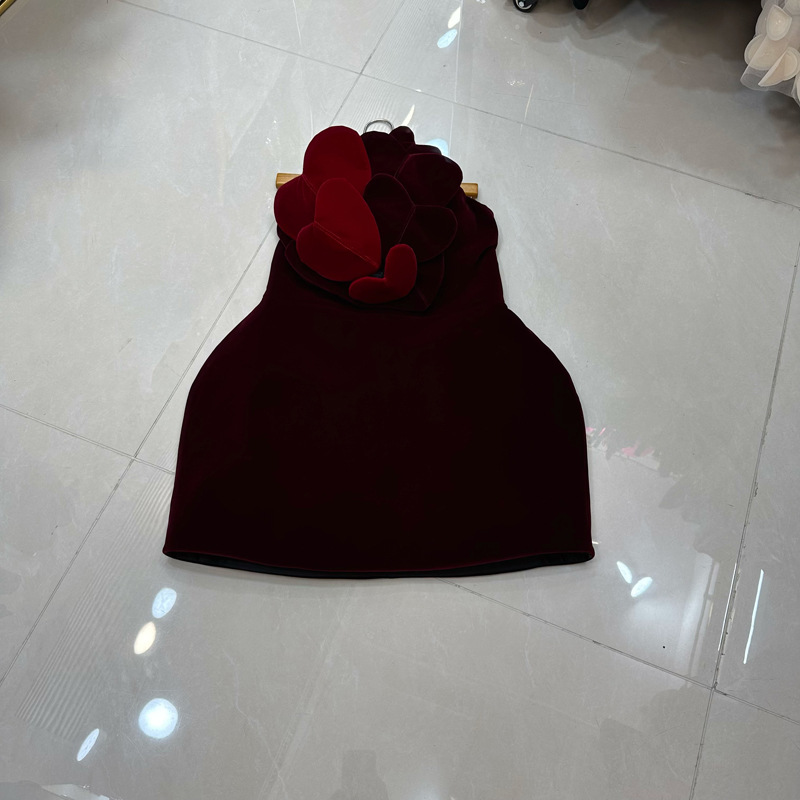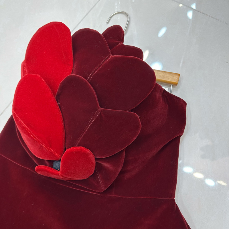 Thirteen line Australian niche design white velvet three-dimensional handmade heart strapless dress A2 # 8357