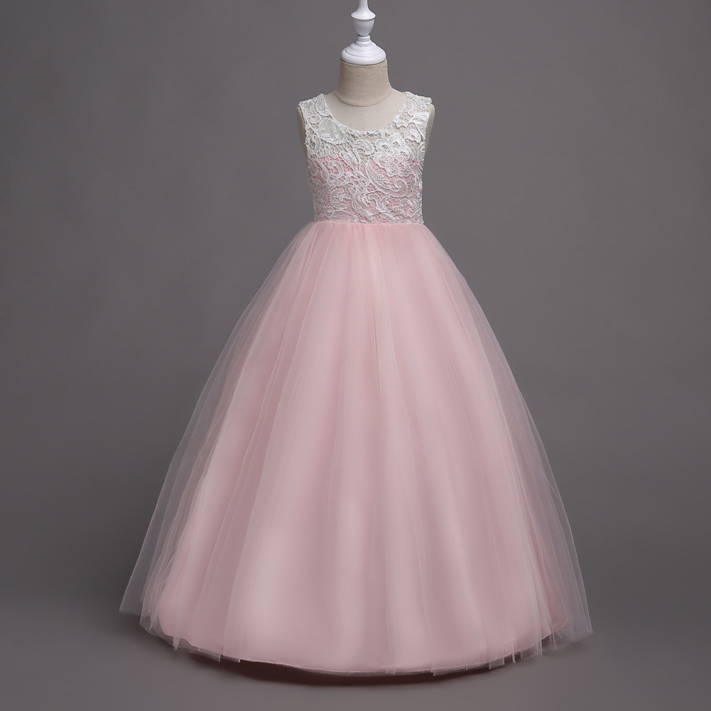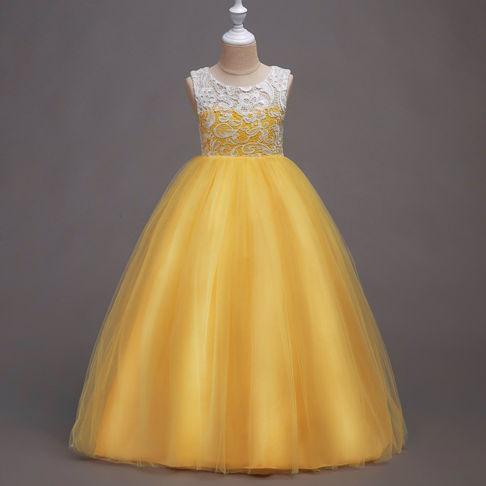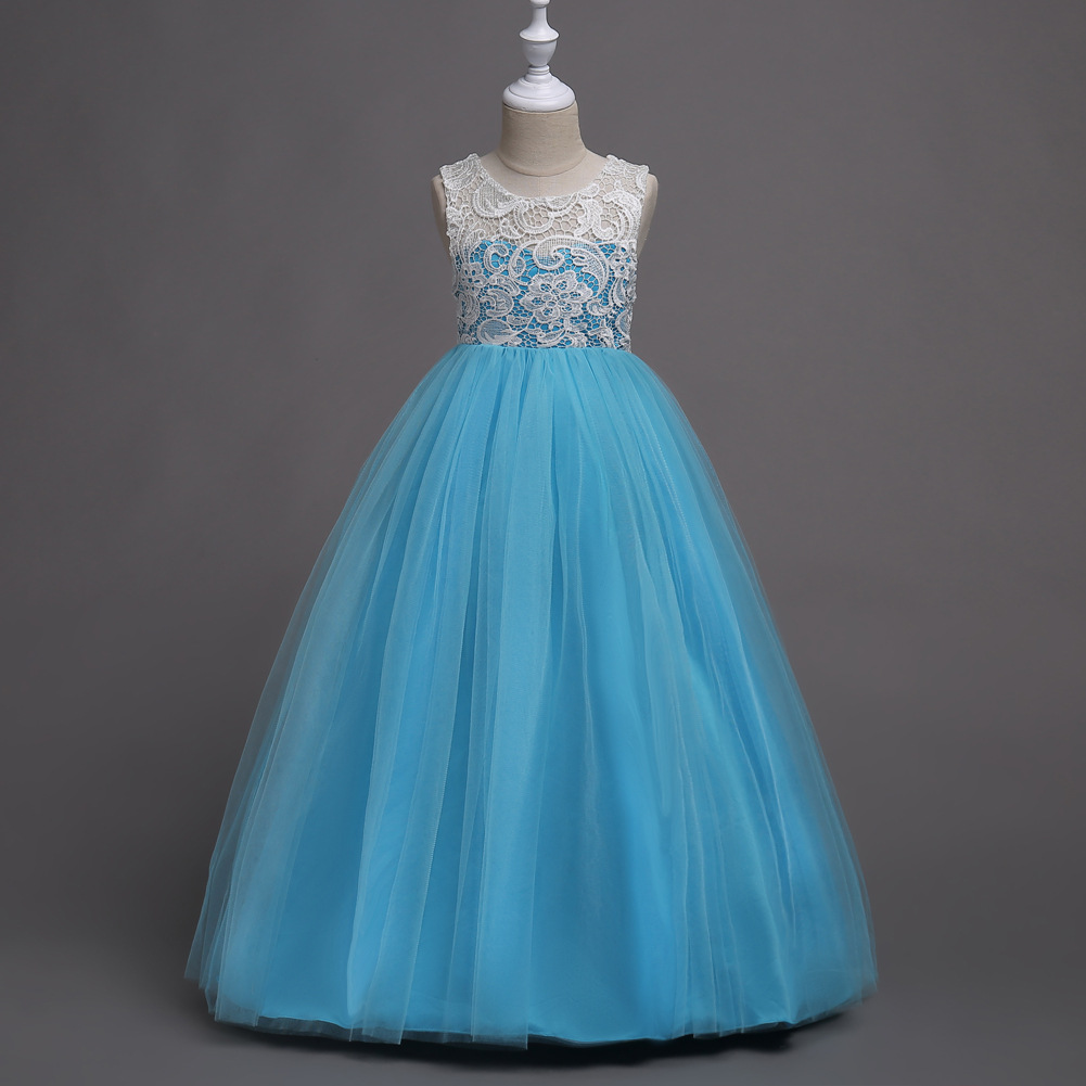 European and American style long dress, high waisted lace fluffy princess dress, flower girl wedding dress, host violin performance costume