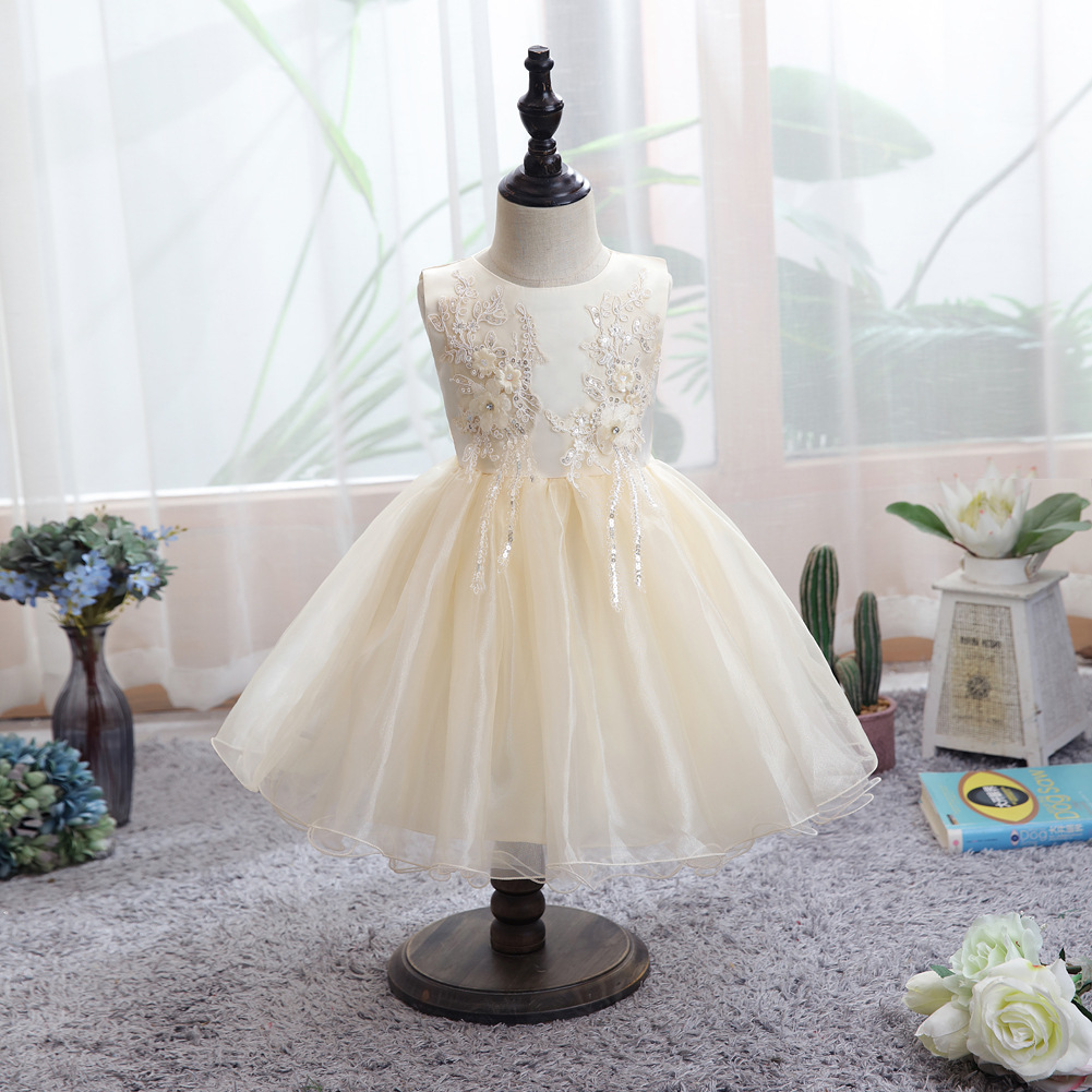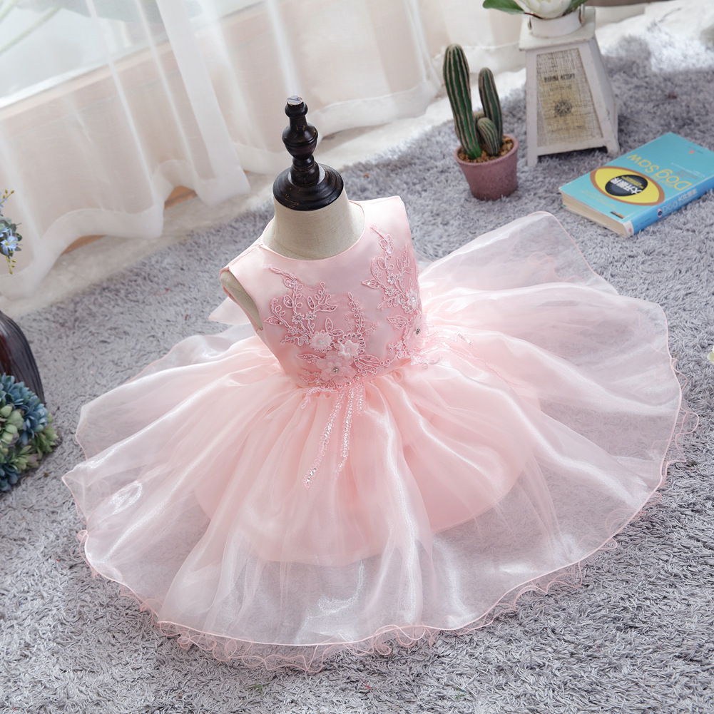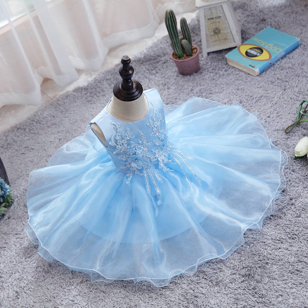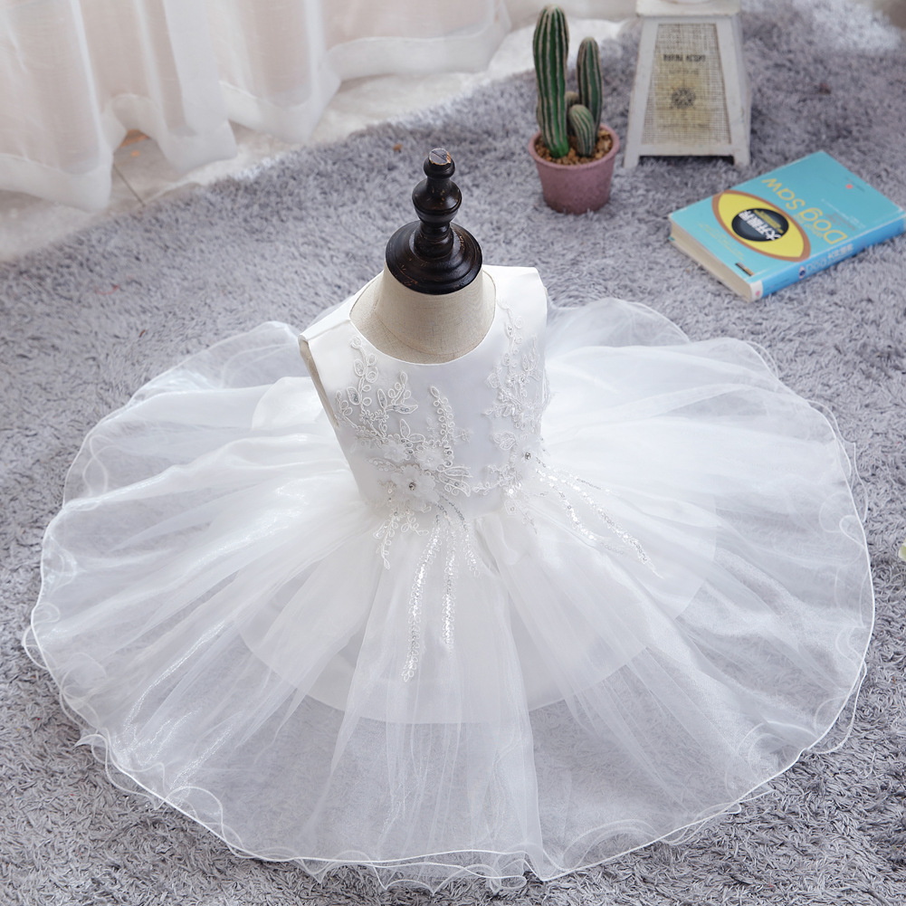 New Flower Girl Dress Wedding Girl One Year Old Baby Infant Princess Skirt Elegant Children's Mesh Puff Skirt