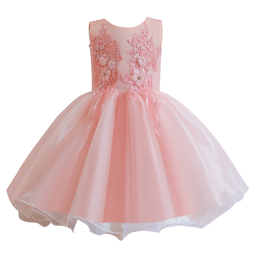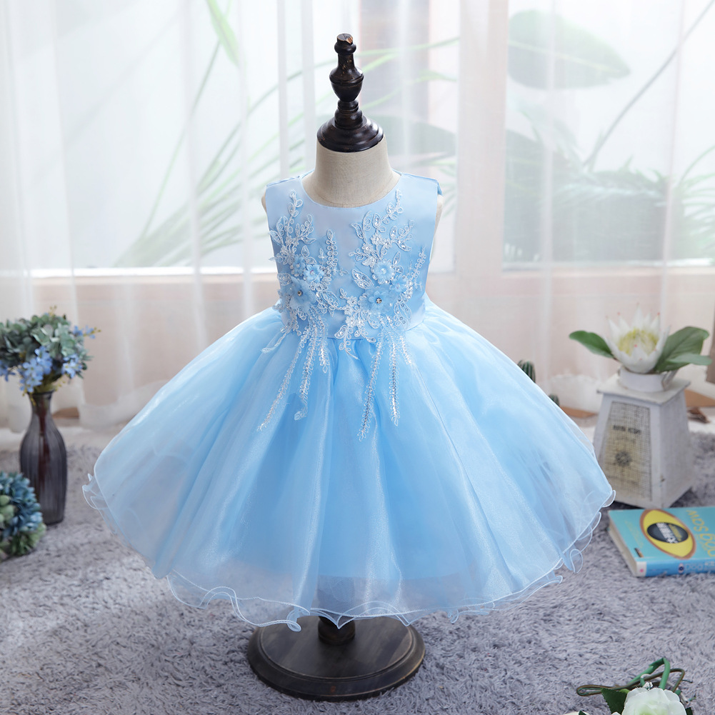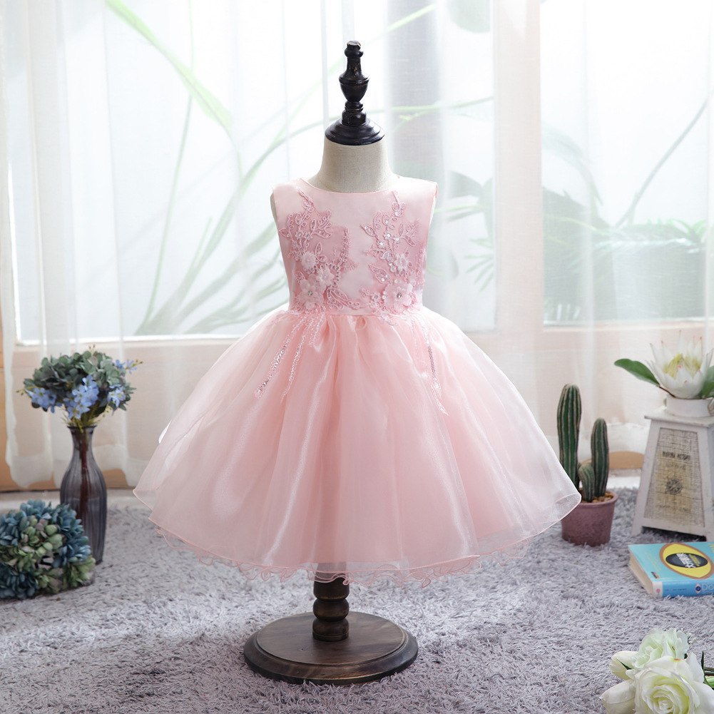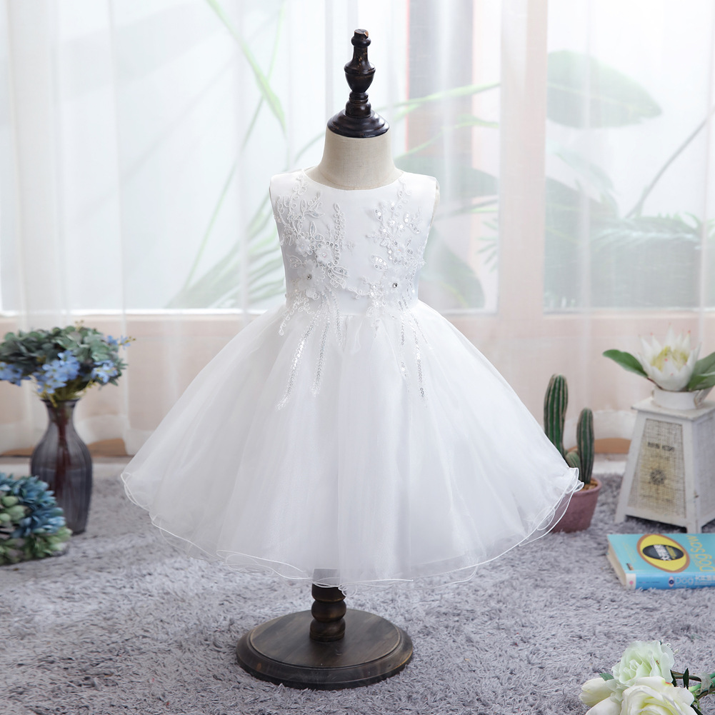 New Flower Girl Dress Wedding Girl One Year Old Baby Infant Princess Skirt Elegant Children's Mesh Puff Skirt