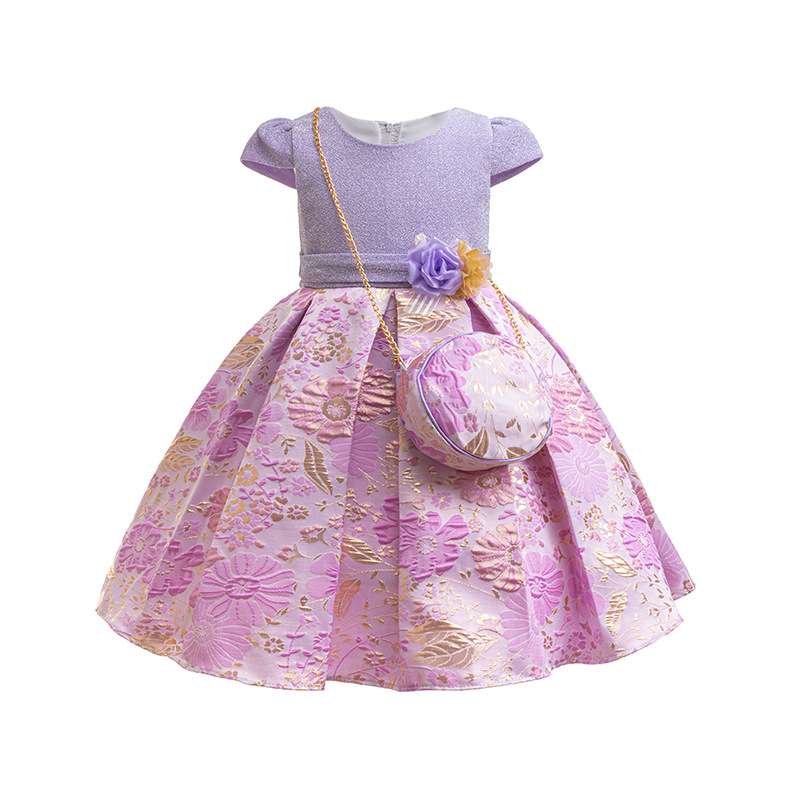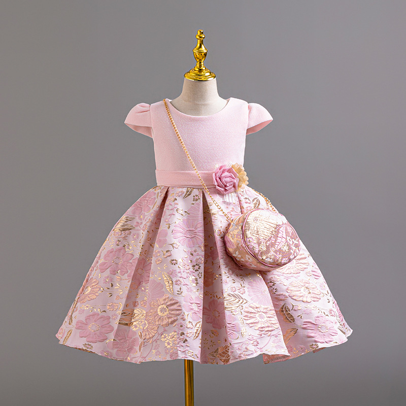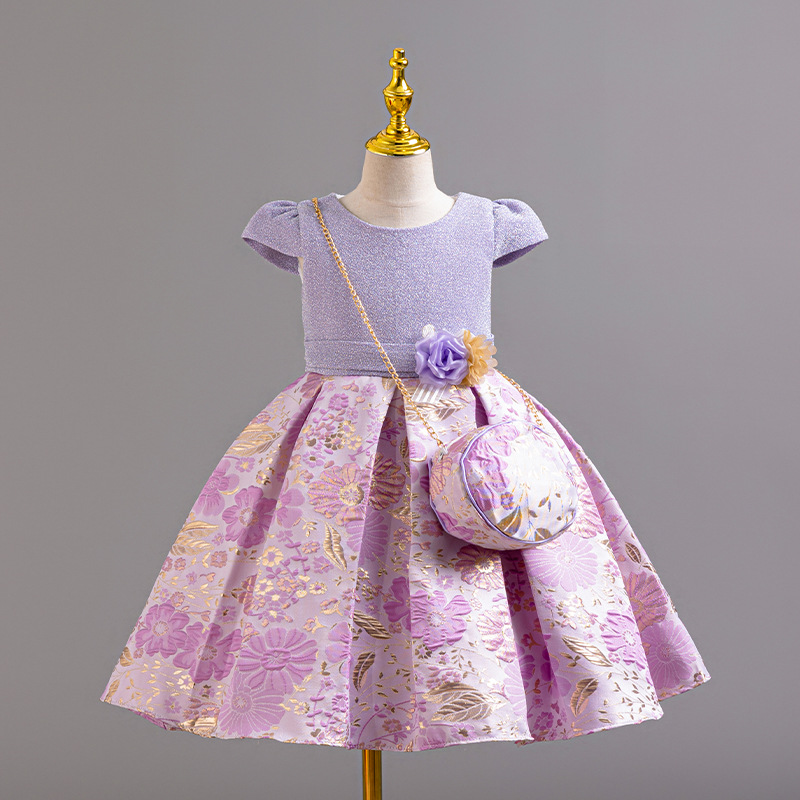 Girls' 3D printed dress with sequins, high-end birthday performance princess dress, children's stage performance dress, dress