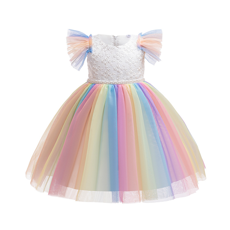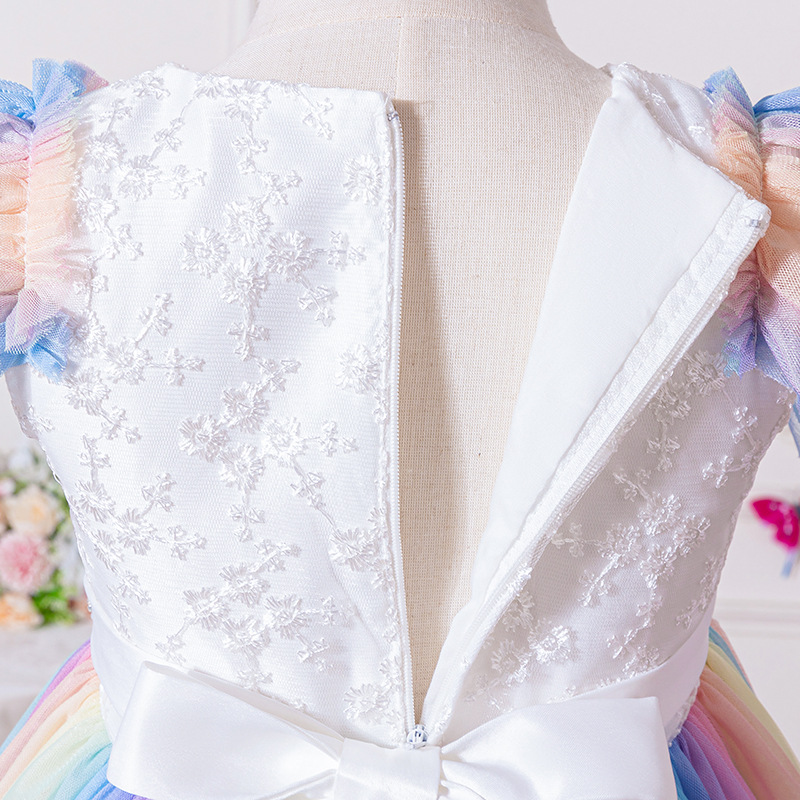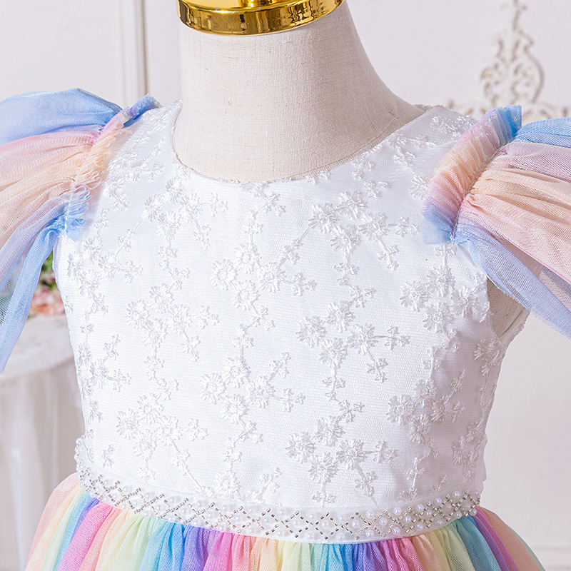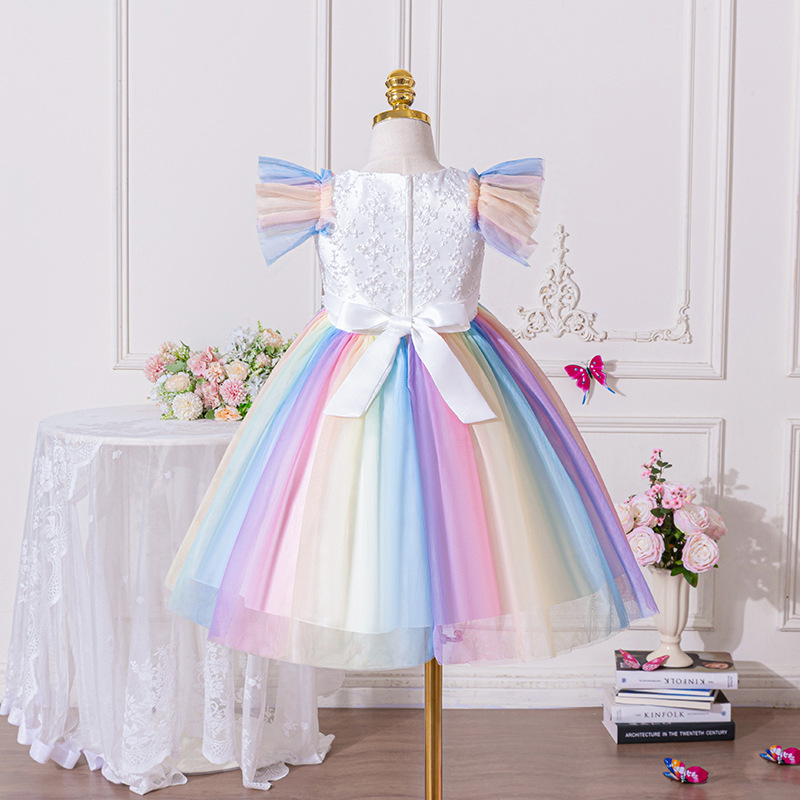Girl's Rainbow Gradient Mesh Princess Dress Birthday Banquet Performance Dress Dress Little Girl Rainbow Puff Dress