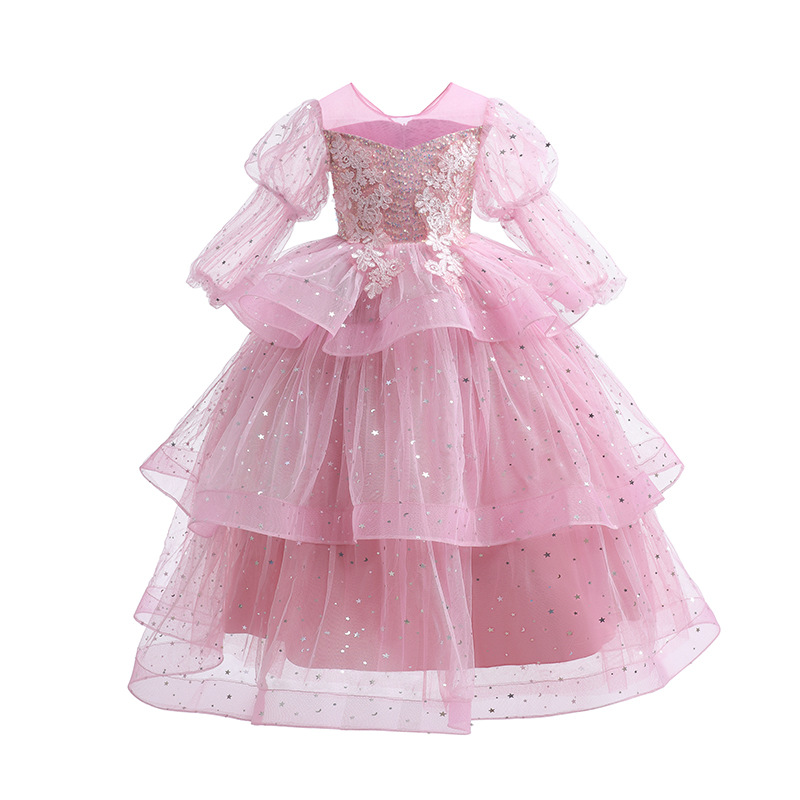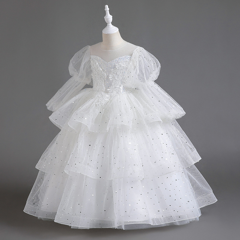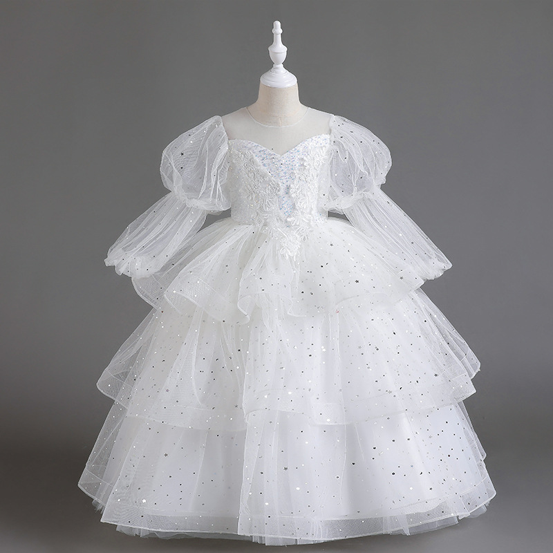 Girls' formal dress, children's host, runway show, piano performance costume, flower girl wedding, fluffy skirt, long sleeved high-end princess dress