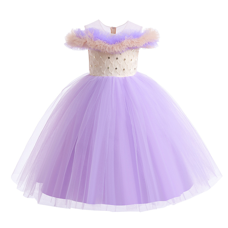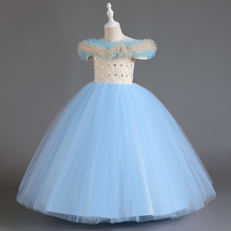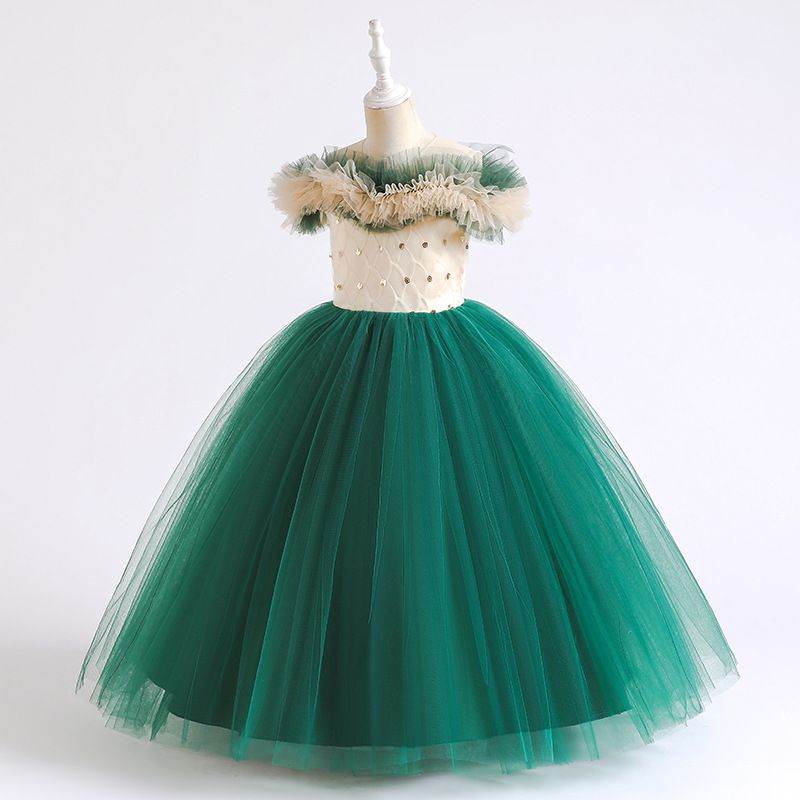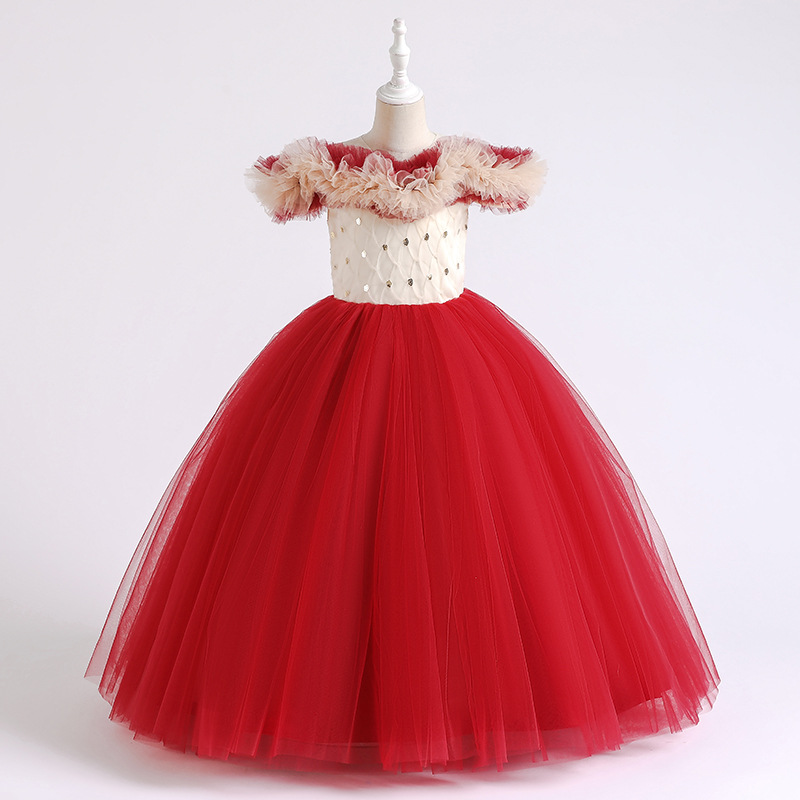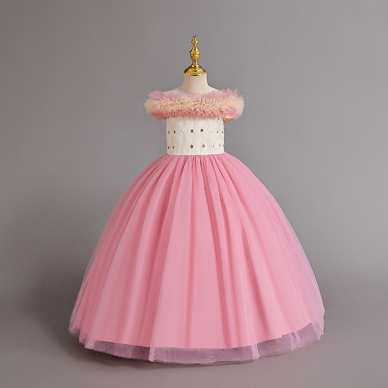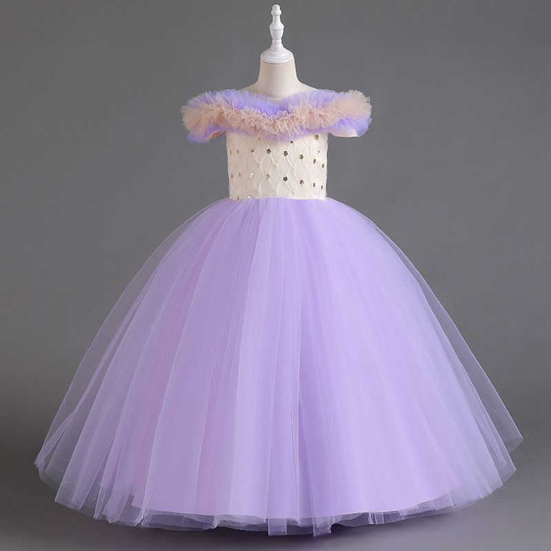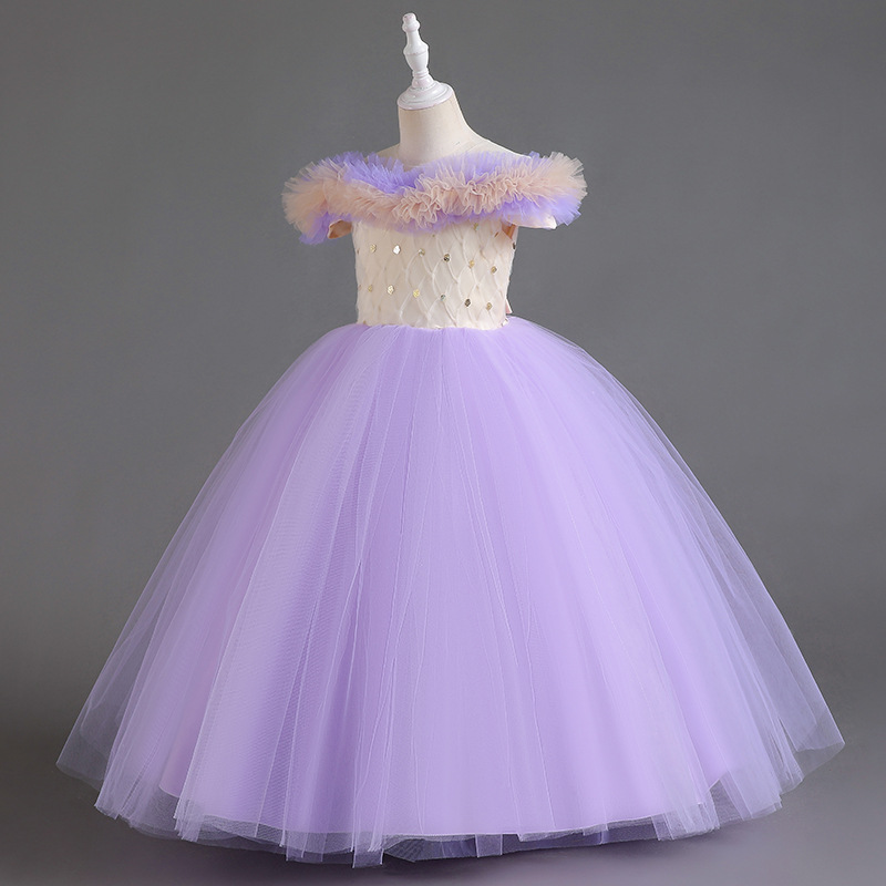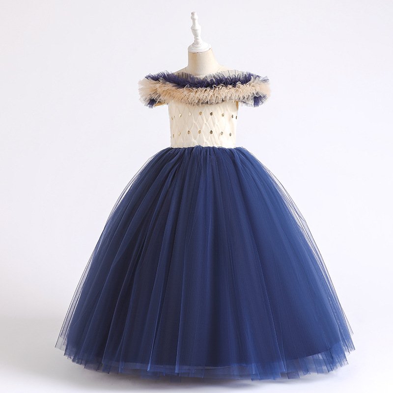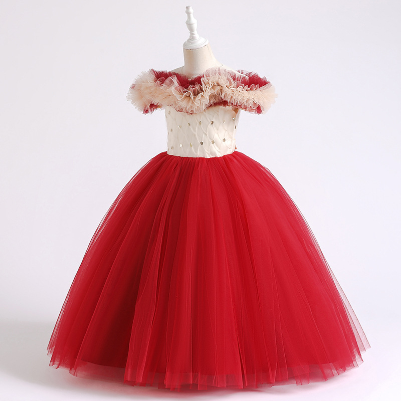 One shoulder girls' dress princess dress flower girl wedding dress stage host walking show children's performance dress dress