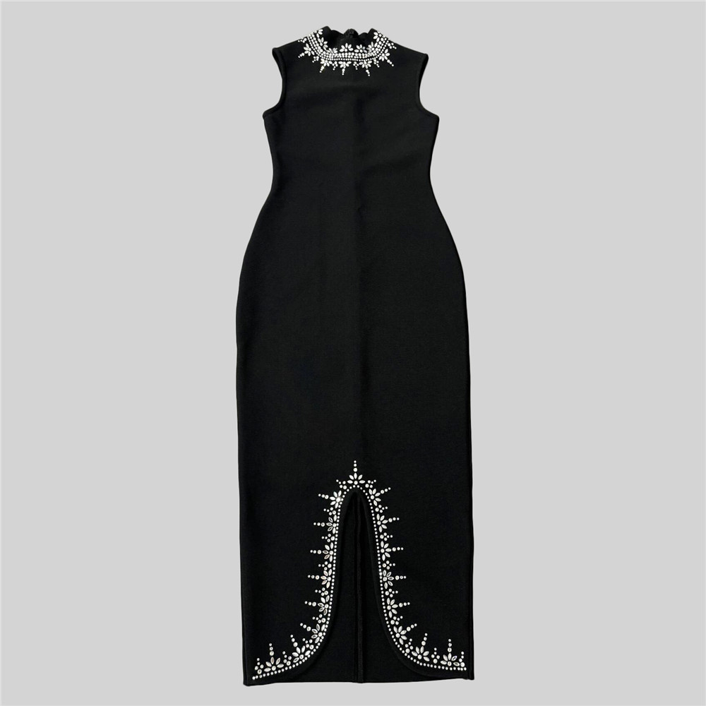 New summer bandage dress with sleeveless hem, sexy and tight fit, hip hugging bandage dress, banquet evening dress, European and American foreign trade