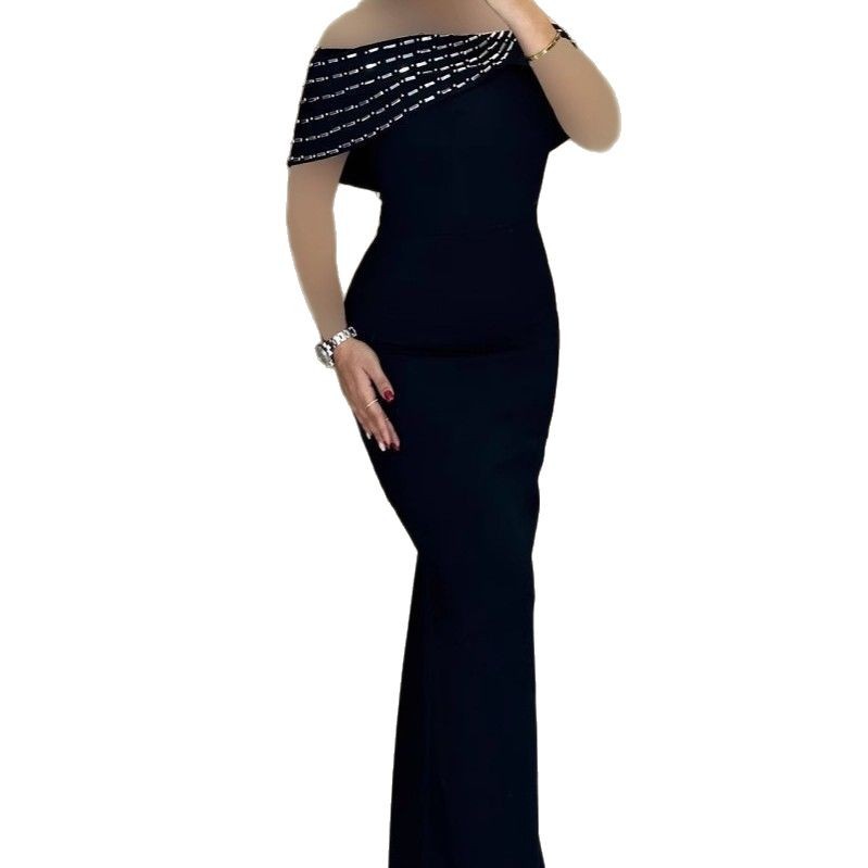 2025 summer new one shoulder bandage dress sleeveless diamond socialite slim fit slimming long dress sexy dress