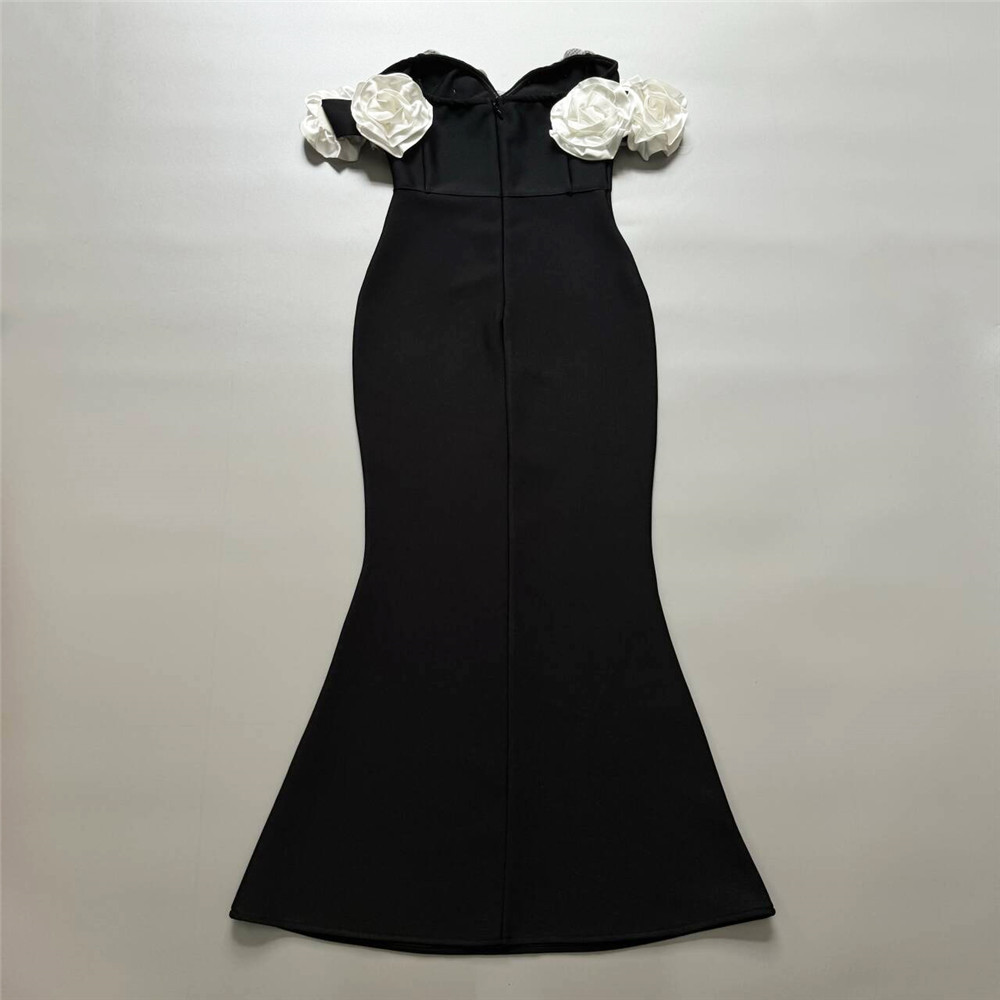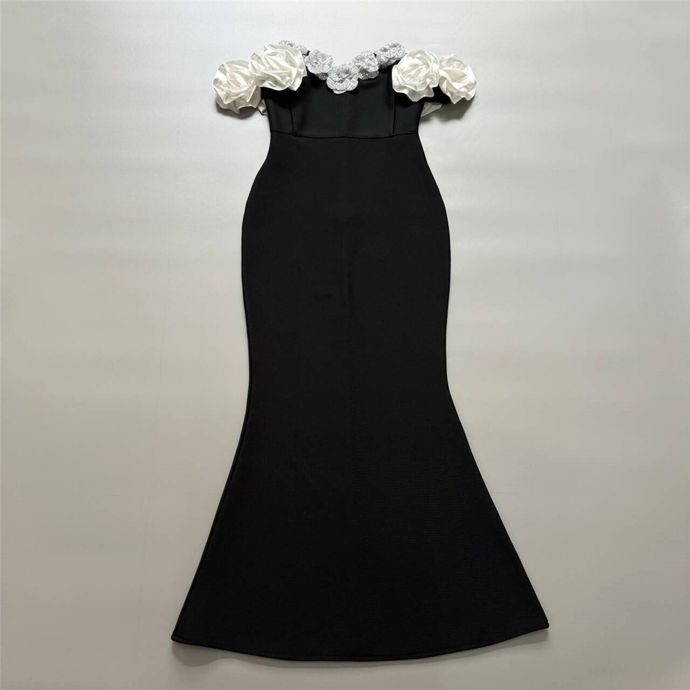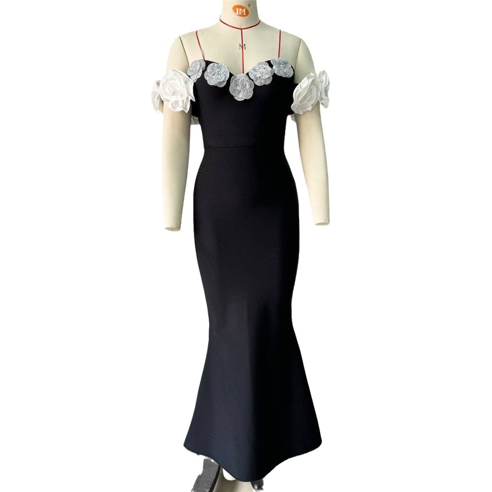 New Evening Dress European and American Elegant Fashion Off Shoulder V-neck Bandaged Dress Sexy Party Tail Dress Cross Overseas