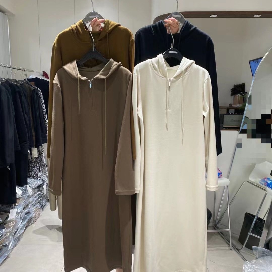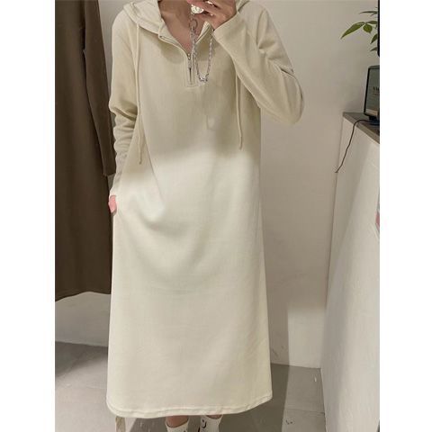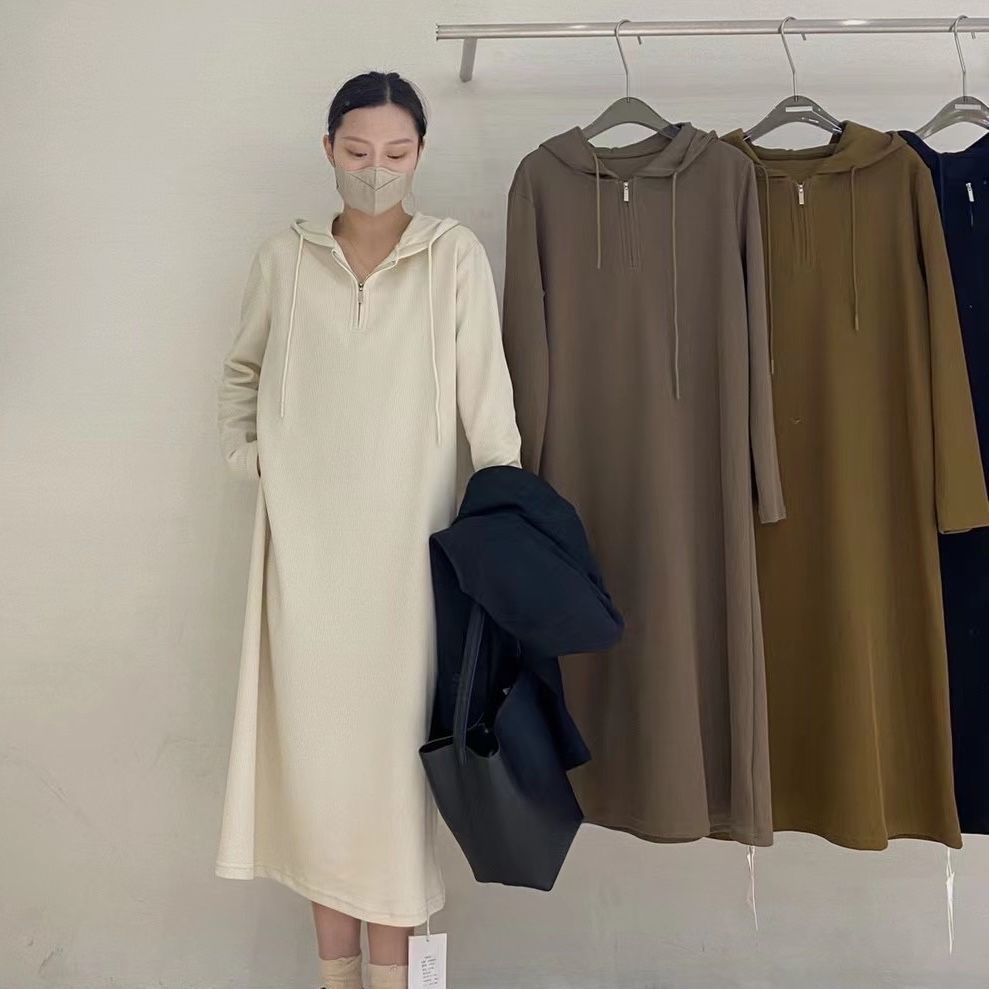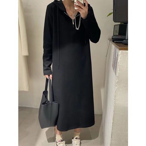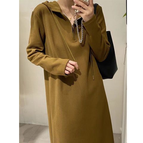 Extra Large 300 Jin Fat MM High Grade Sensation Pit Strip Hooded Bottom Skirt for Women Autumn Loose and Versatile Long Dress