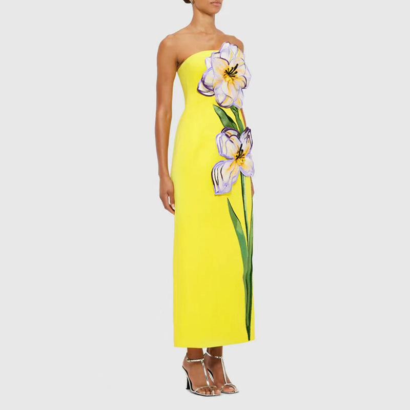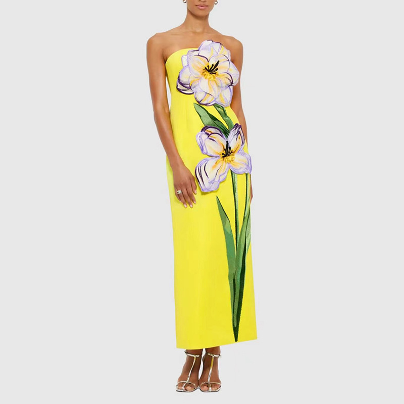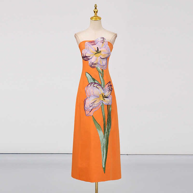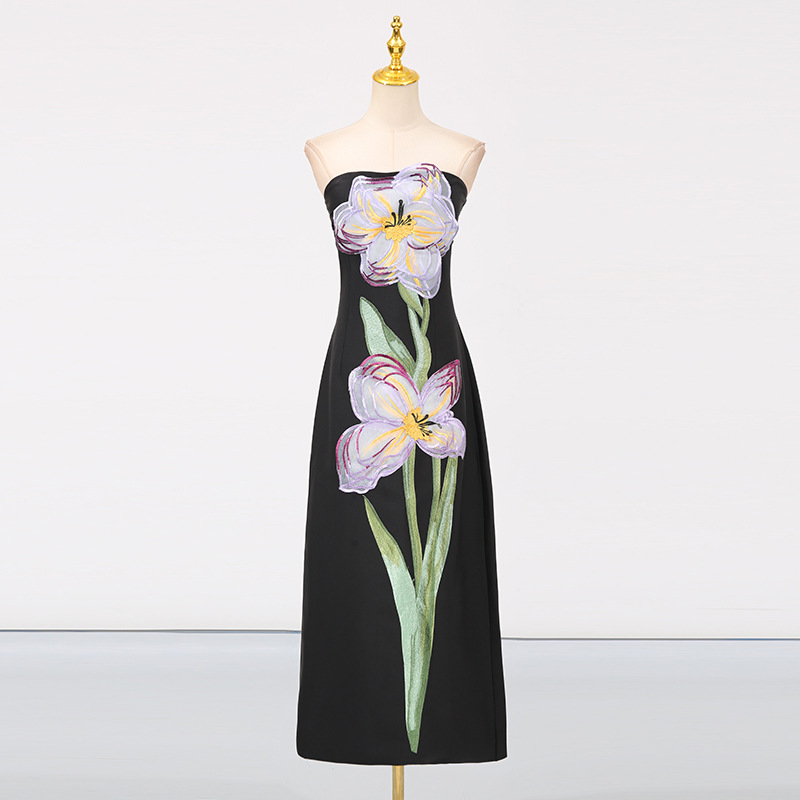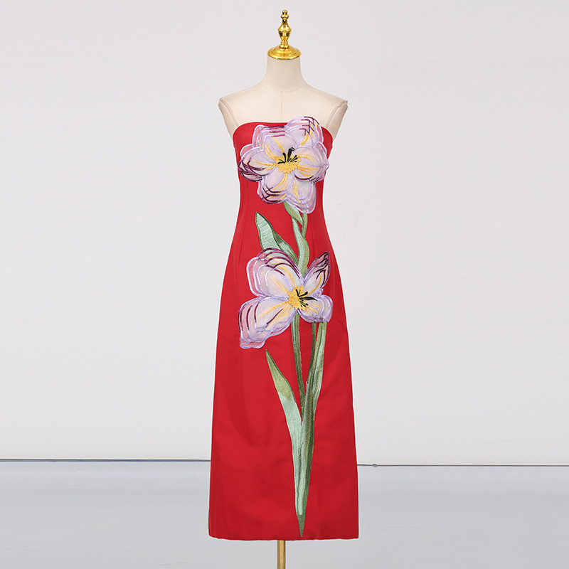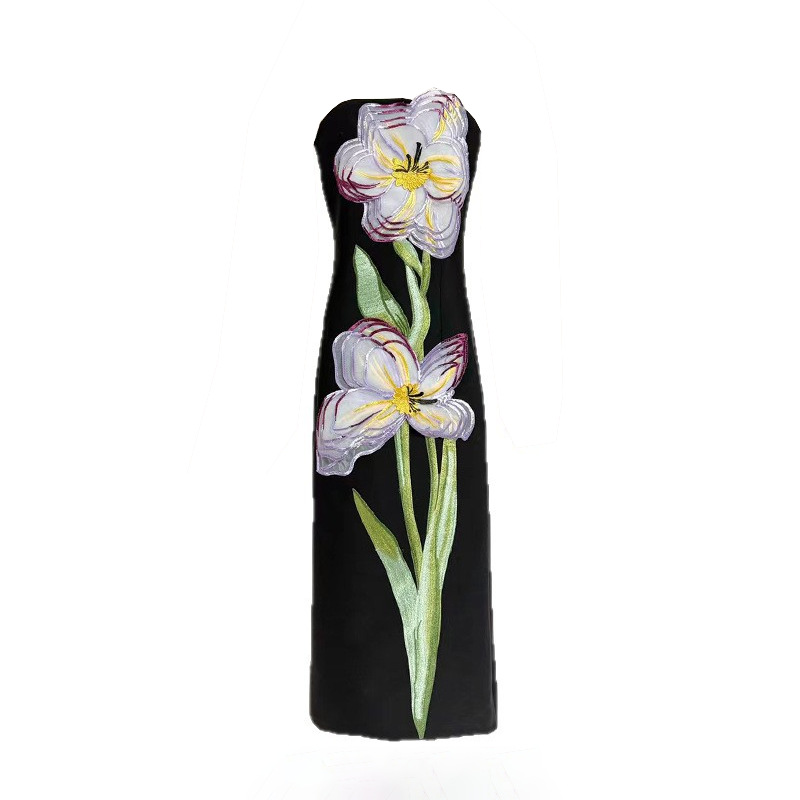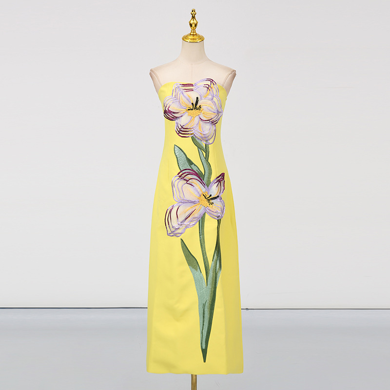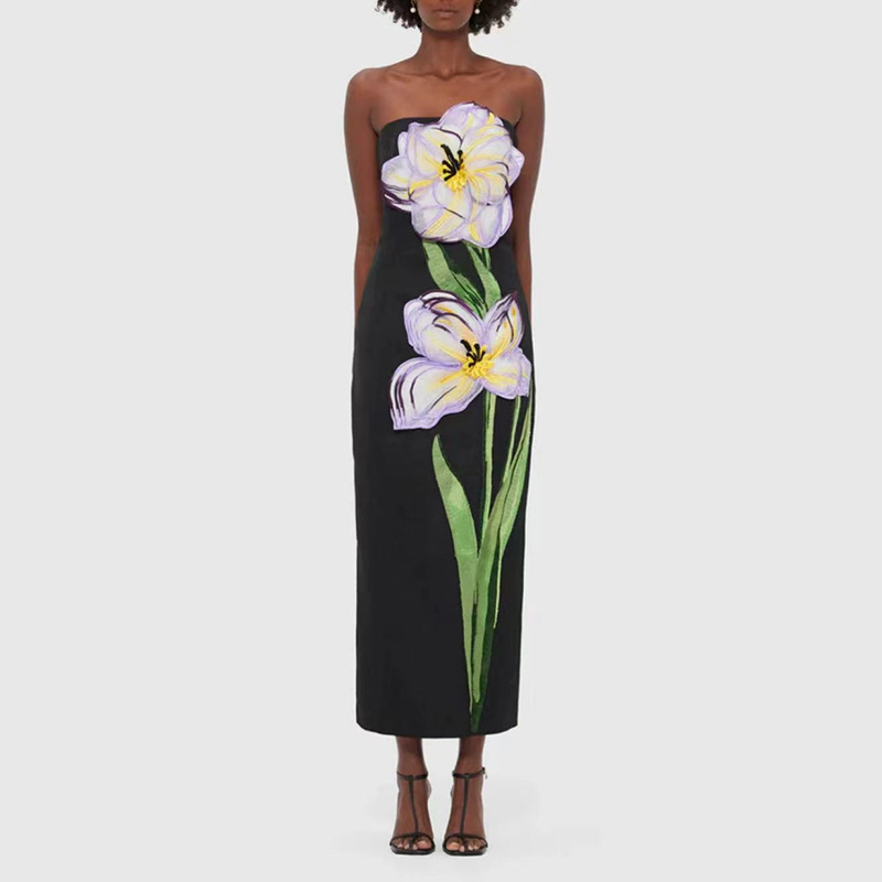 European and American socialite style design long dress 2025 new fashionable flower embroidery strapless sleeveless dress for women